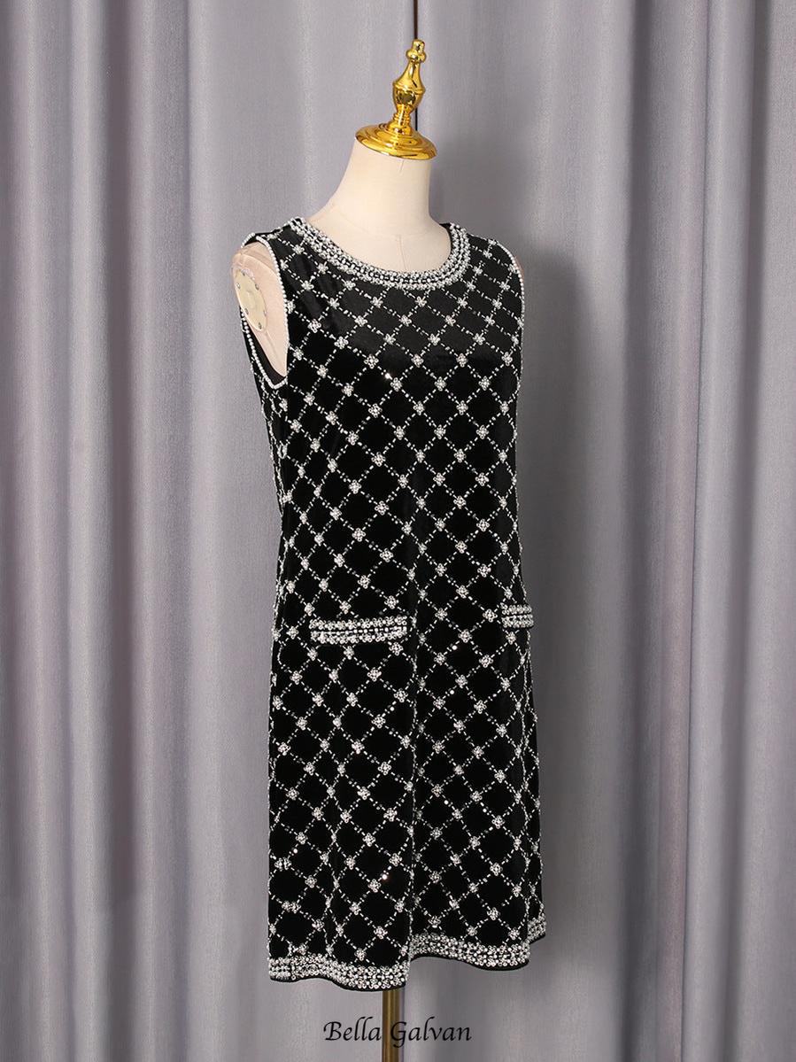 The Amanda dress combines timeless plaid patterning with a modern diamond motif for an effortlessly chic look. This sleeveless mini silhouette offers versatility—dress it up for evening events or down for casual outings. The black-and-white colorway ensures easy styling with your existing wardrobe, while the structured design provides flattering support. Perfect for those seeking a statement piece that balances classic elegance with contemporary flair.