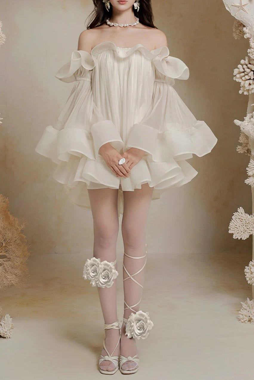 bernice Ruffle Layer Crinkle Chiffon Mini Dress in white