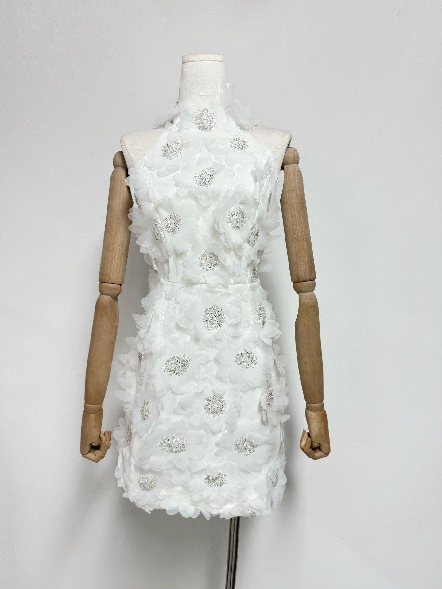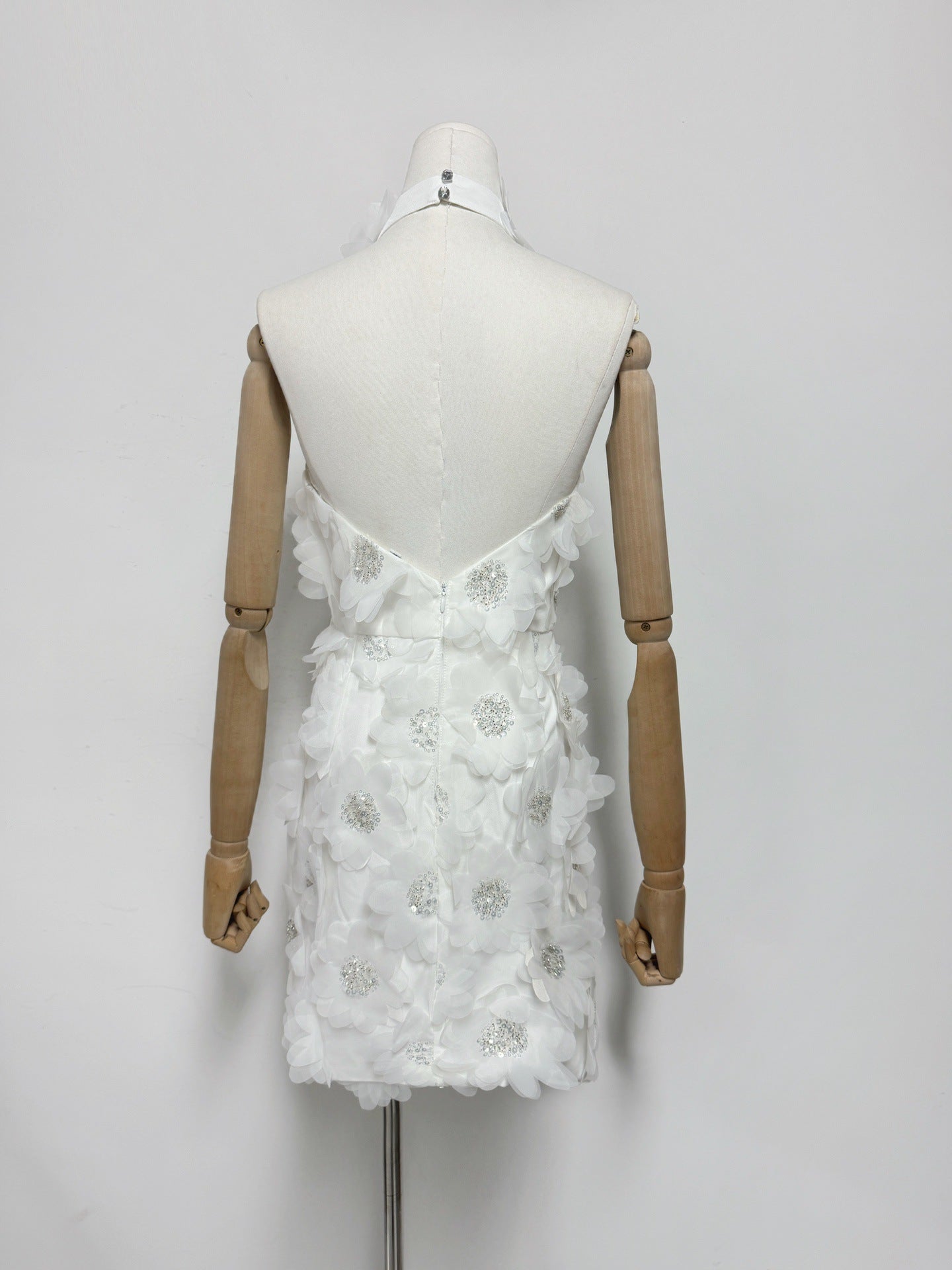 Radiate elegance in the Cherry Blossom Mini Dress in White, a delicate yet striking party mini dress designed to turn heads. Crafted with intricate 3D floral mesh, this dress brings texture and movement, creating a romantic and ethereal look. The halter neckline frames the shoulders beautifully, while the low scooped backline adds a graceful, feminine touch.