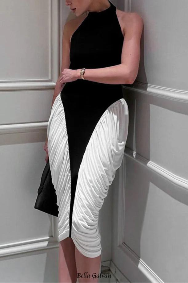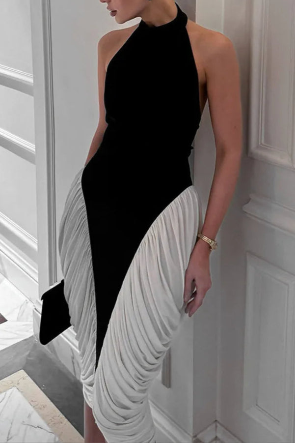 Colorblock Patchwork Sleeveless pleated midi Dress