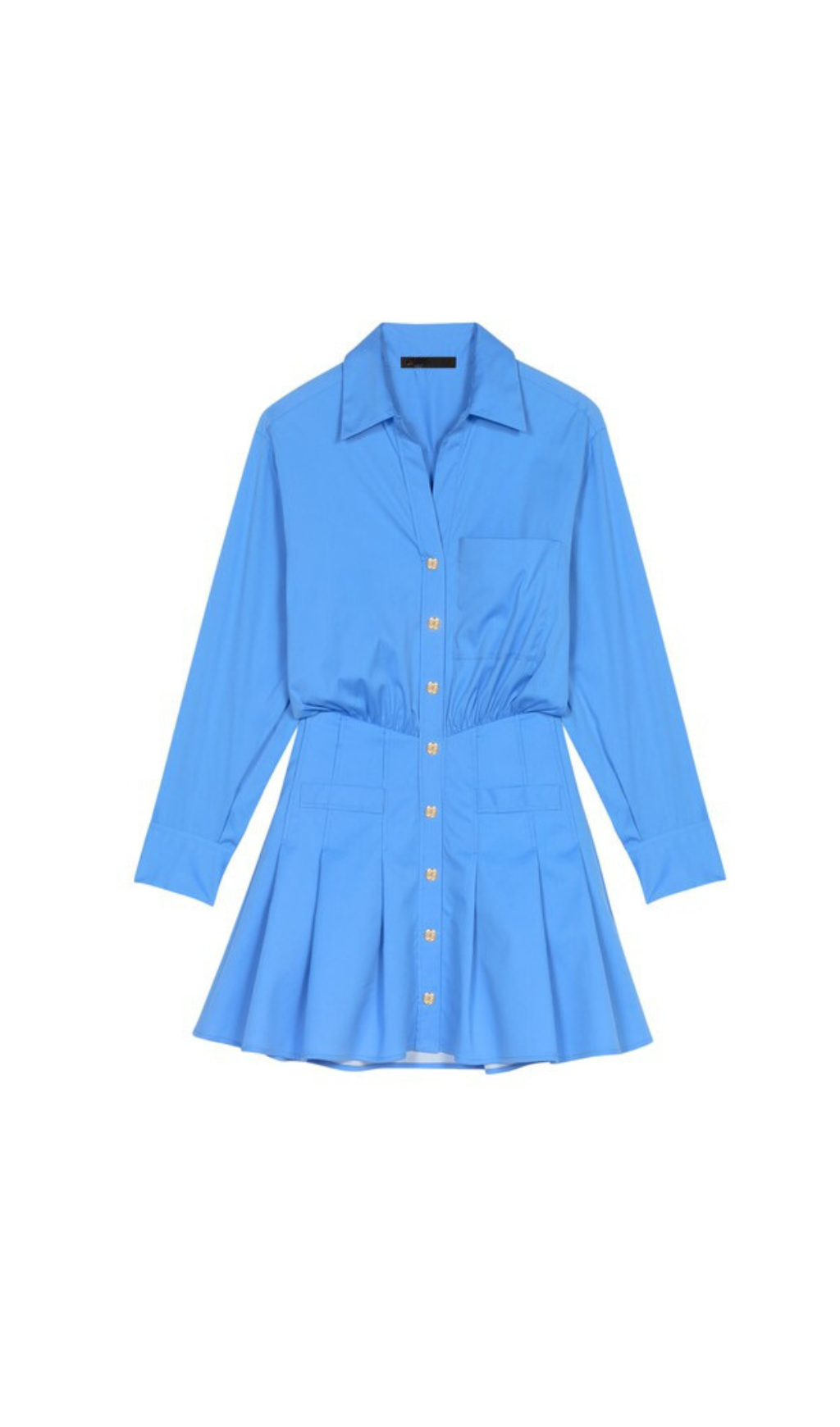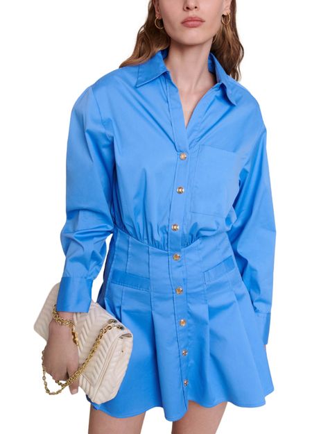 Its flared design adds a playful touch to a classic shirt dress. Perfect for any occasion, this dress will make you stand out in the best way possible. Don't miss out on this quirky and fun addition to your wardrobe.