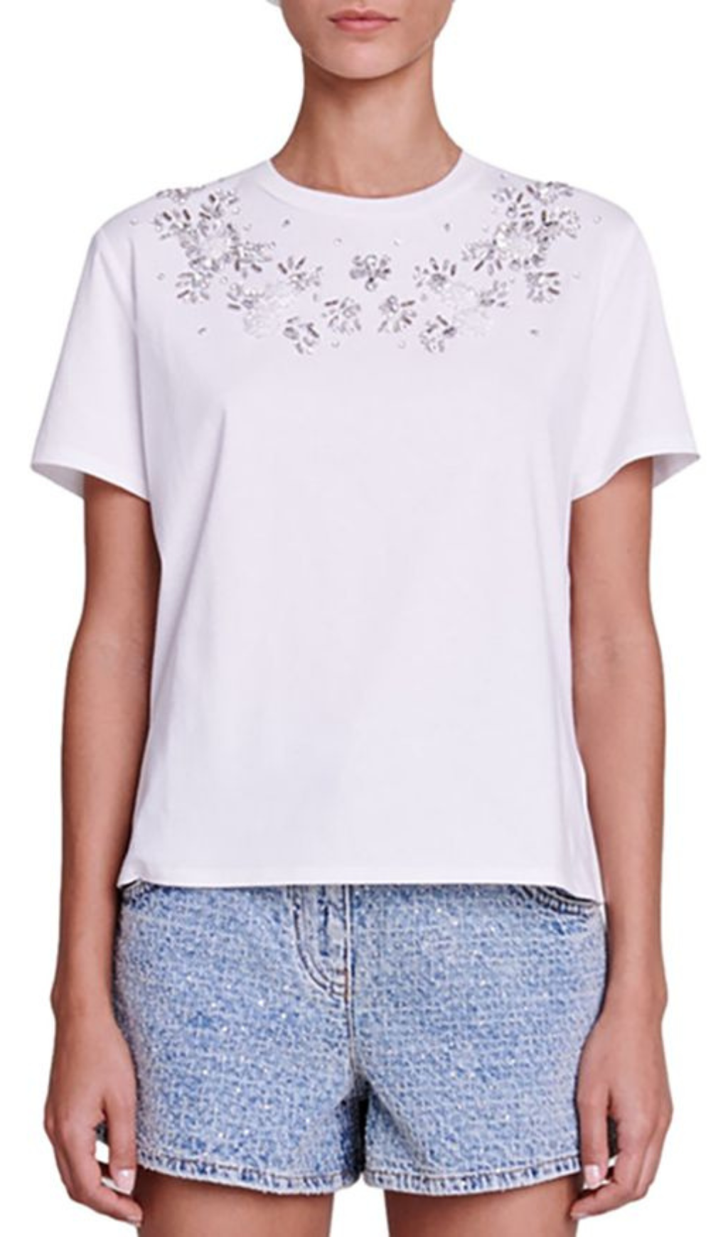 This stunning top features delicate floral embellishments, adding feminine flair to any outfit. Dress it up or down for a versatile and stylish look. Elevate your wardrobe today with this must-have piece!