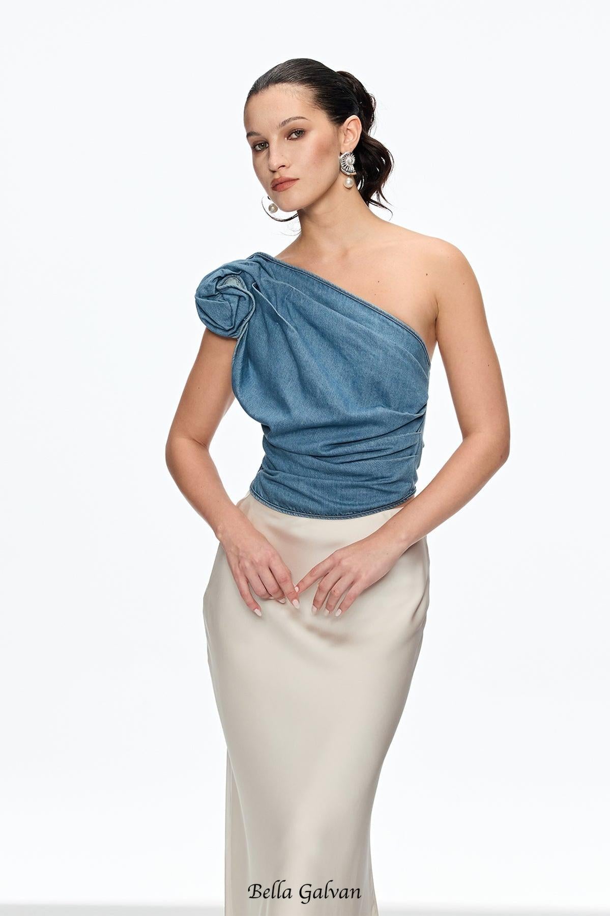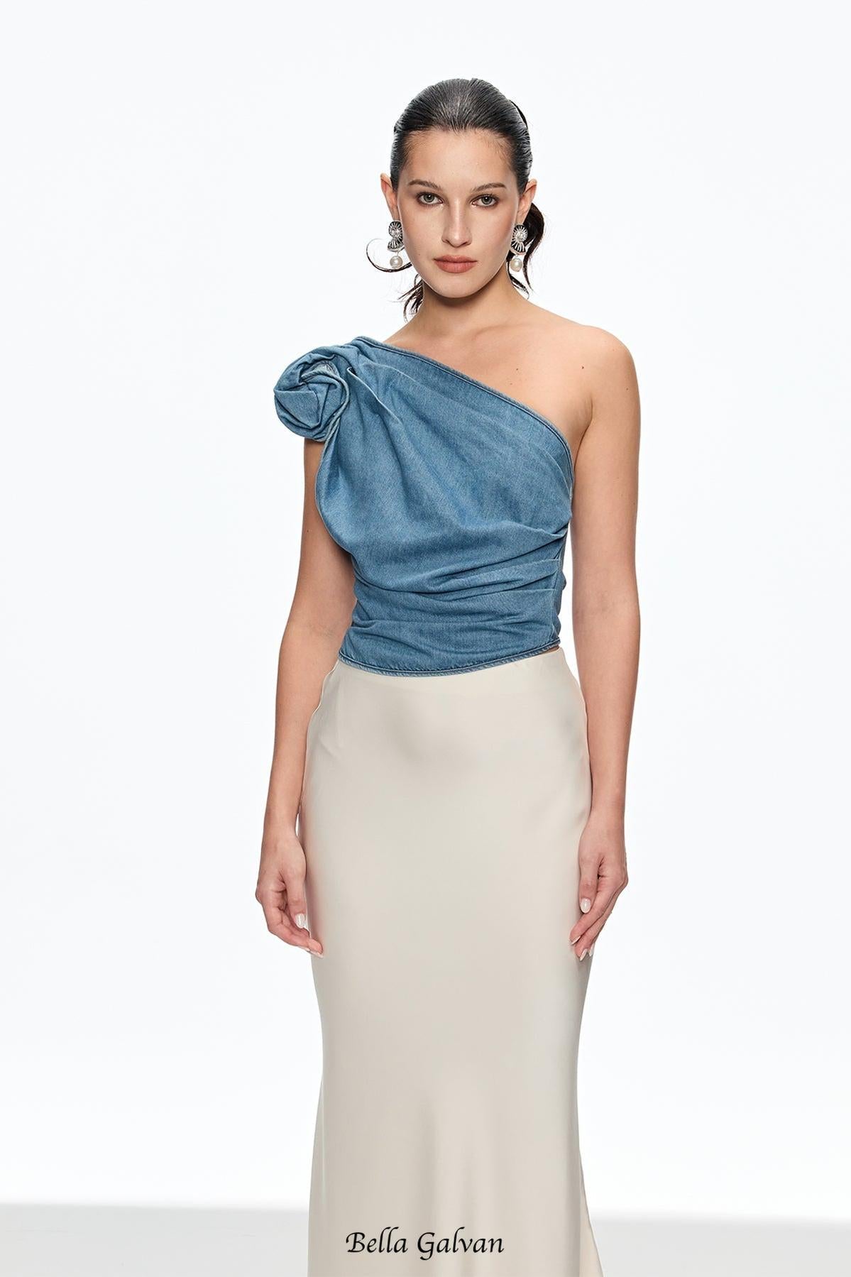 The Caesonia Single Shoulder Flower Top offers a sophisticated silhouette with its asymmetrical neckline and delicate floral detailing. Crafted for a refined fit, this top enhances your natural elegance while providing a modern, stylish statement. Ideal for both casual and dressier occasions, it combines comfort with a distinctive design that elevates your wardrobe effortlessly.