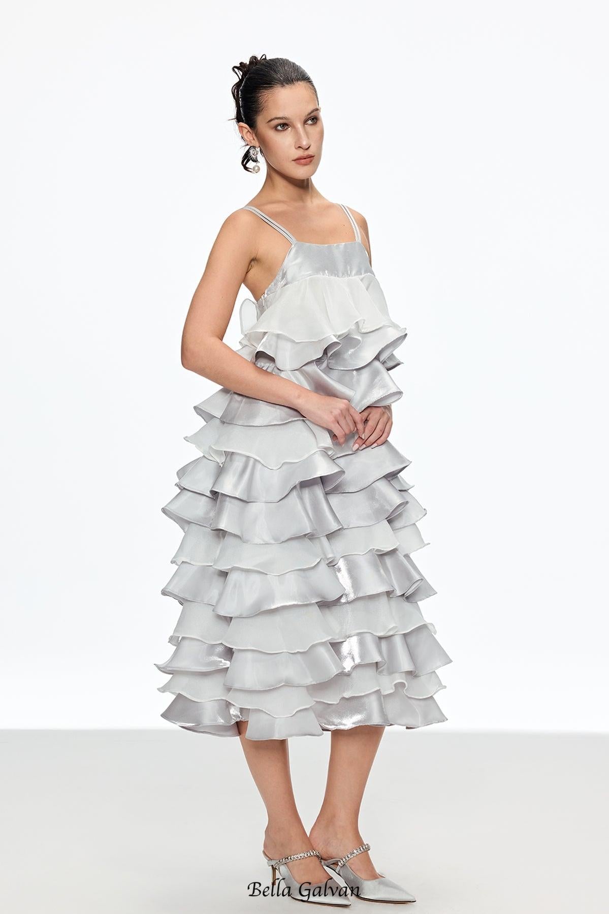 The griselda Ruffle Spaghetti Midi Dress combines elegant design with expert tailoring. Featuring delicate spaghetti straps and a flattering midi length, this dress offers a refined silhouette enhanced by subtle ruffle details. Ideal for both formal occasions and stylish daytime events, it provides a sophisticated yet comfortable fit that complements a variety of body types. Crafted with attention to detail, the dress ensures a polished look that stands out with understated charm.