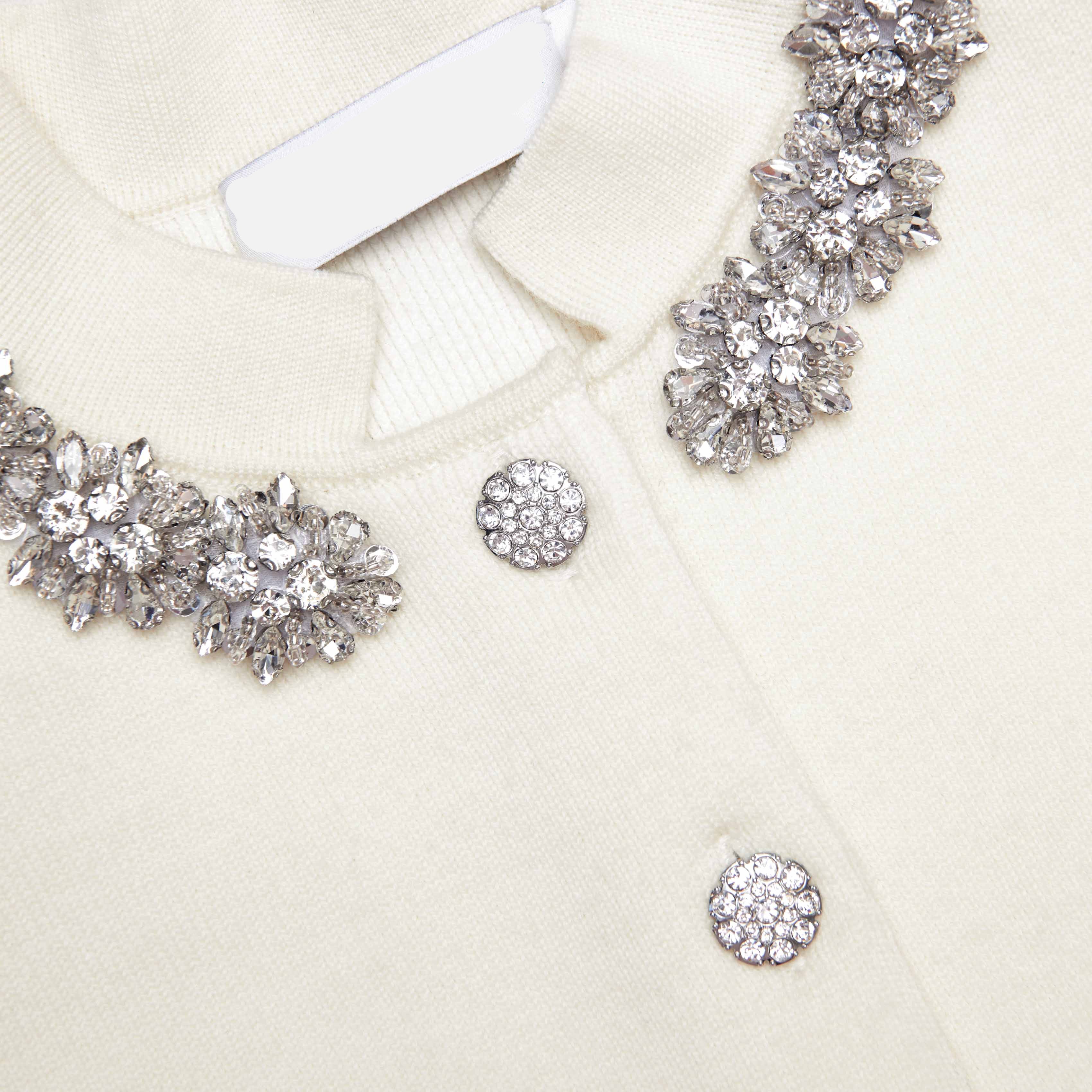Our iconic tailored midi dress is reimagined in cotton wool cashmere for a cosy feel. Its belted waist cinches in above a sculpted midi skirt – diamanté buttons and trims are the cherries on top.
