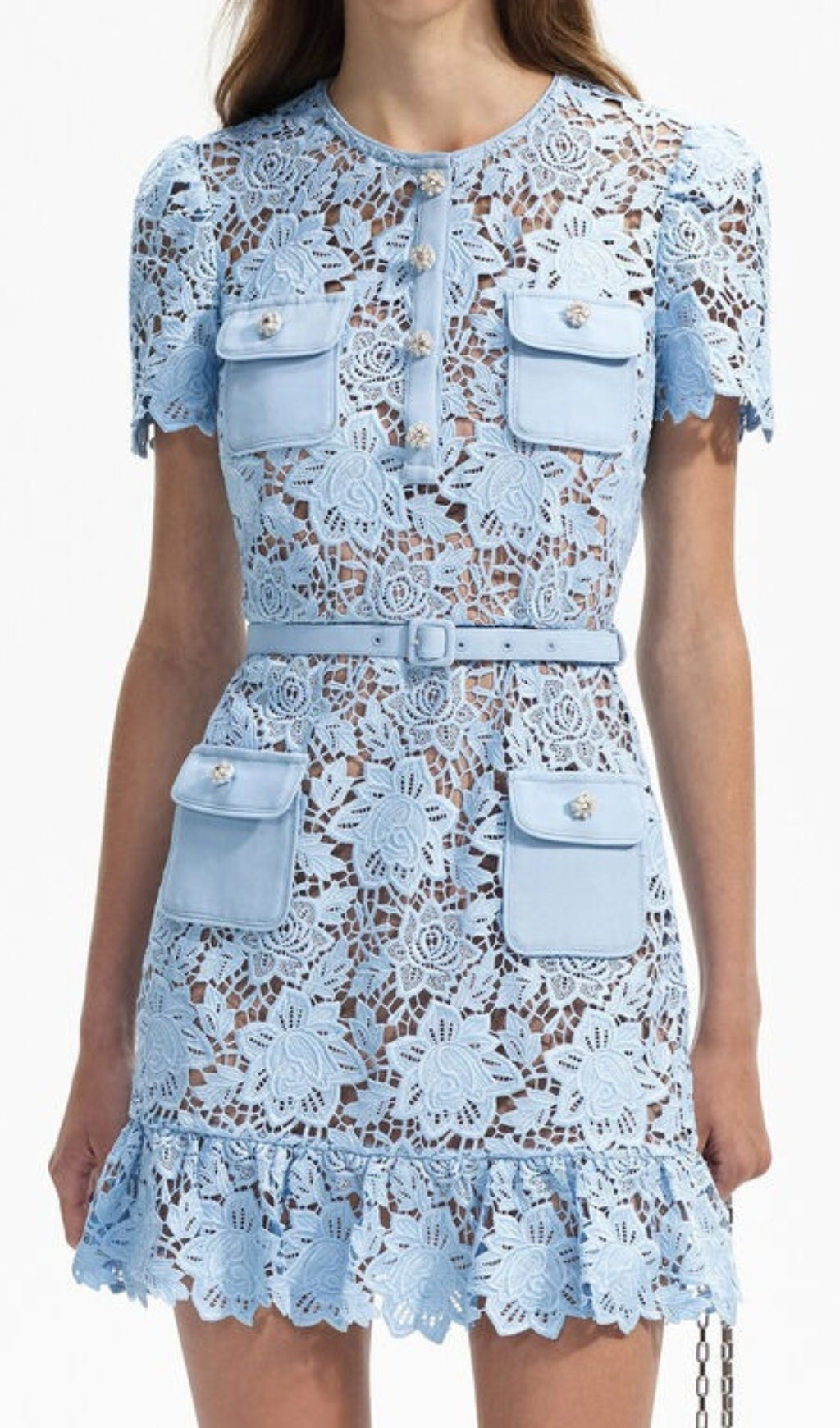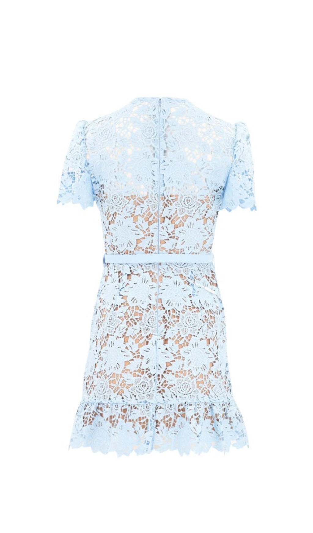 LIGHT BLUE LACE PEPLUM MINI DRESS