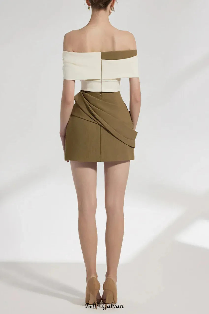 The Marjorie A-line Pleated Cotton Twill Mini Dress in khaki combines structured elegance with casual comfort. Crafted from durable cotton twill, its pleated A-line silhouette offers a flattering fit that moves gracefully. Ideal for versatile styling, this mini dress balances sophistication and ease, making it a refined choice for both day and evening wear.