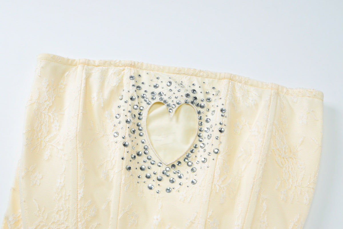 Too bad your ex don't do it for you...but our Forever Ever Strapless Lace Mini Dress in Lemon will! Features a strapless design with gel grip at bust, mesh lined, boning in bodice, centre front love heart cut out design with diamanté detailing, invisible back zipper and clasp closure, wrap skirt overlay design and mini length.