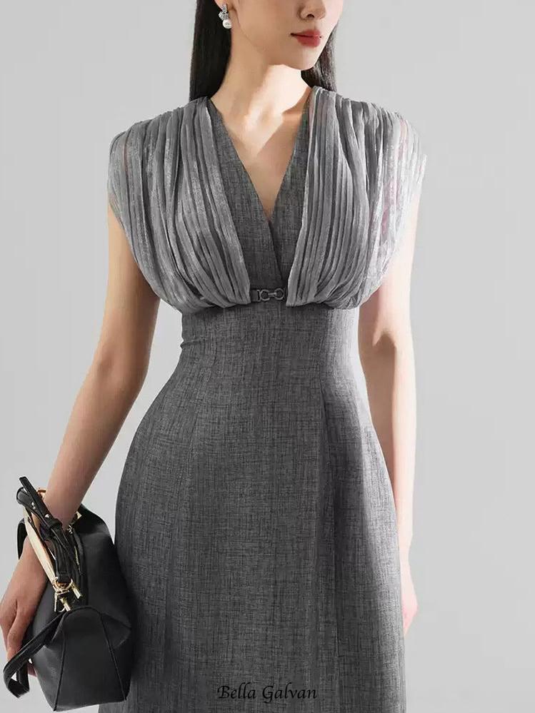 Mesh stitching sleeveless midi dress in grey