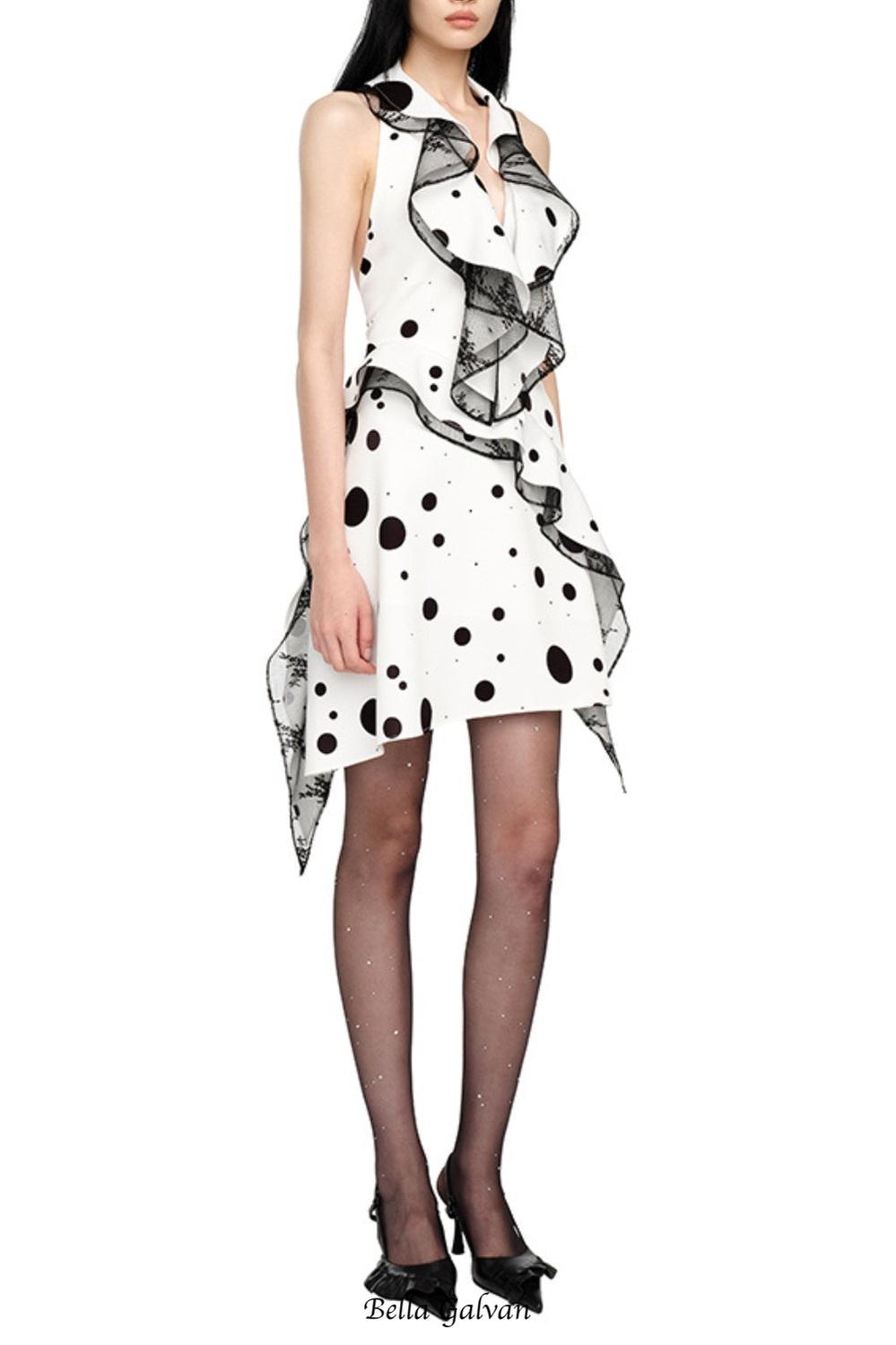 phoenix Ruffled Polka Dot Backless mini Dress in white