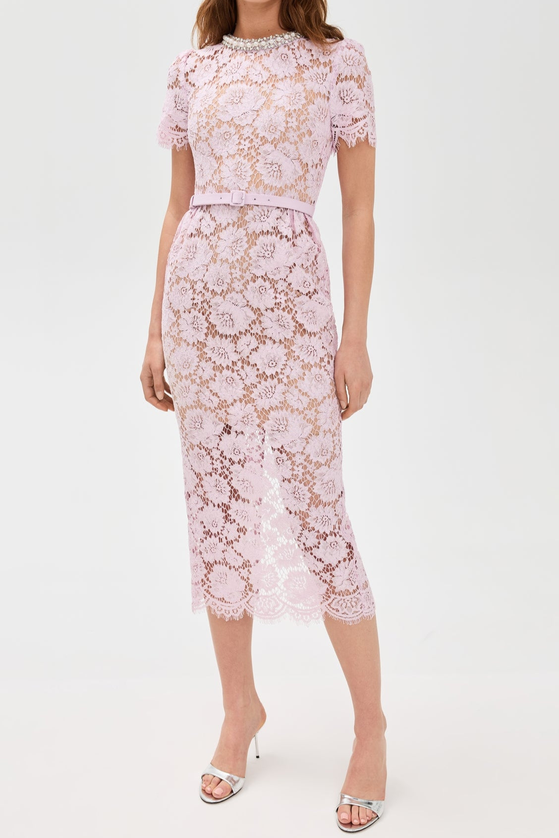 Elevate your wardrobe with the Pink Hollow Lace Pearl Midi Dress, expertly designed for refined elegance. This dress features delicate hollow lace detailing that adds texture and softness, complemented by subtle pearl embellishments that provide a sophisticated shimmer. The midi length offers a balanced silhouette suitable for various occasions, while the lightweight fabric ensures comfort throughout the day or evening. Perfect for those seeking a tasteful blend of classic and contemporary style.