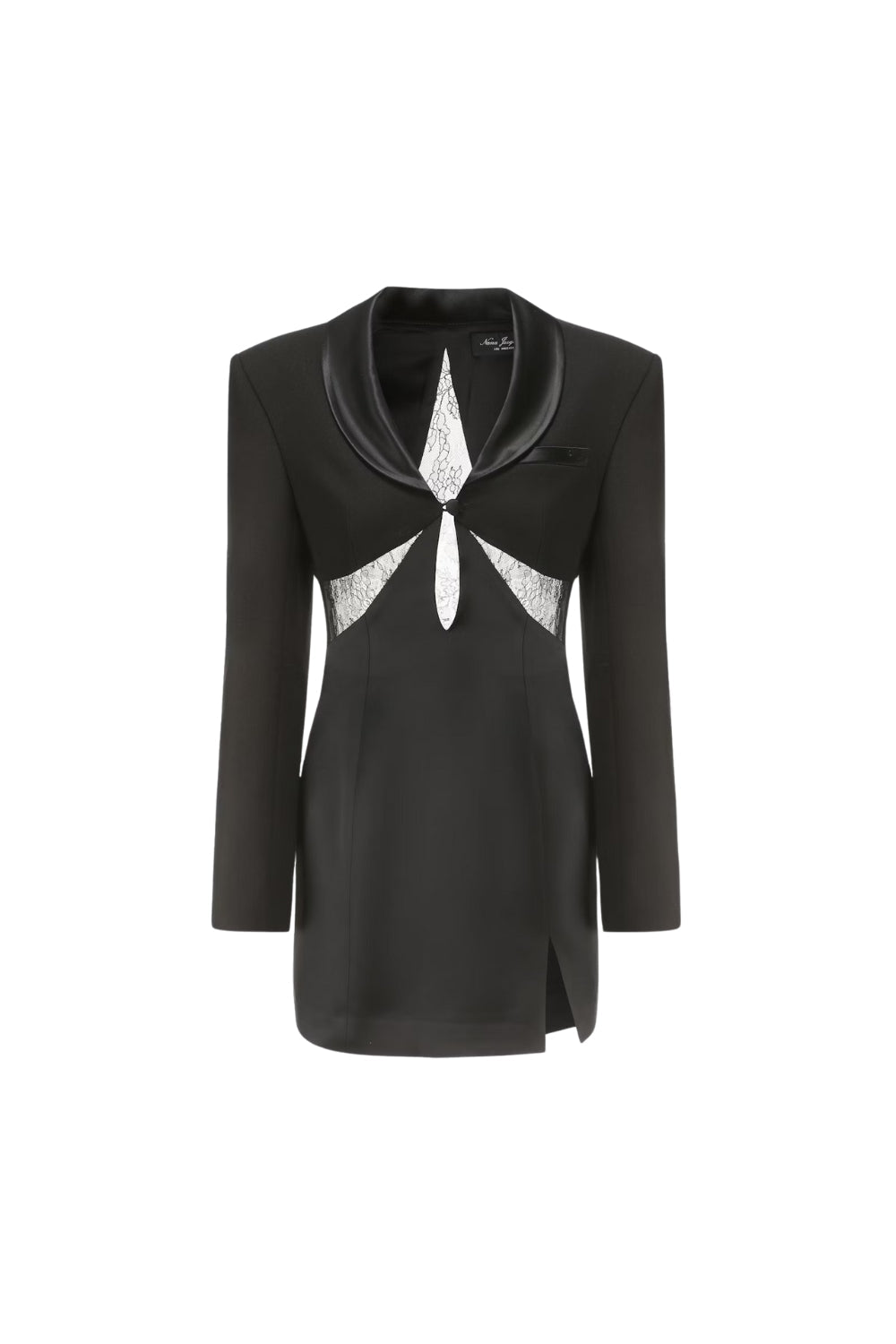 prima Lace see-through blazer mini dress in black
