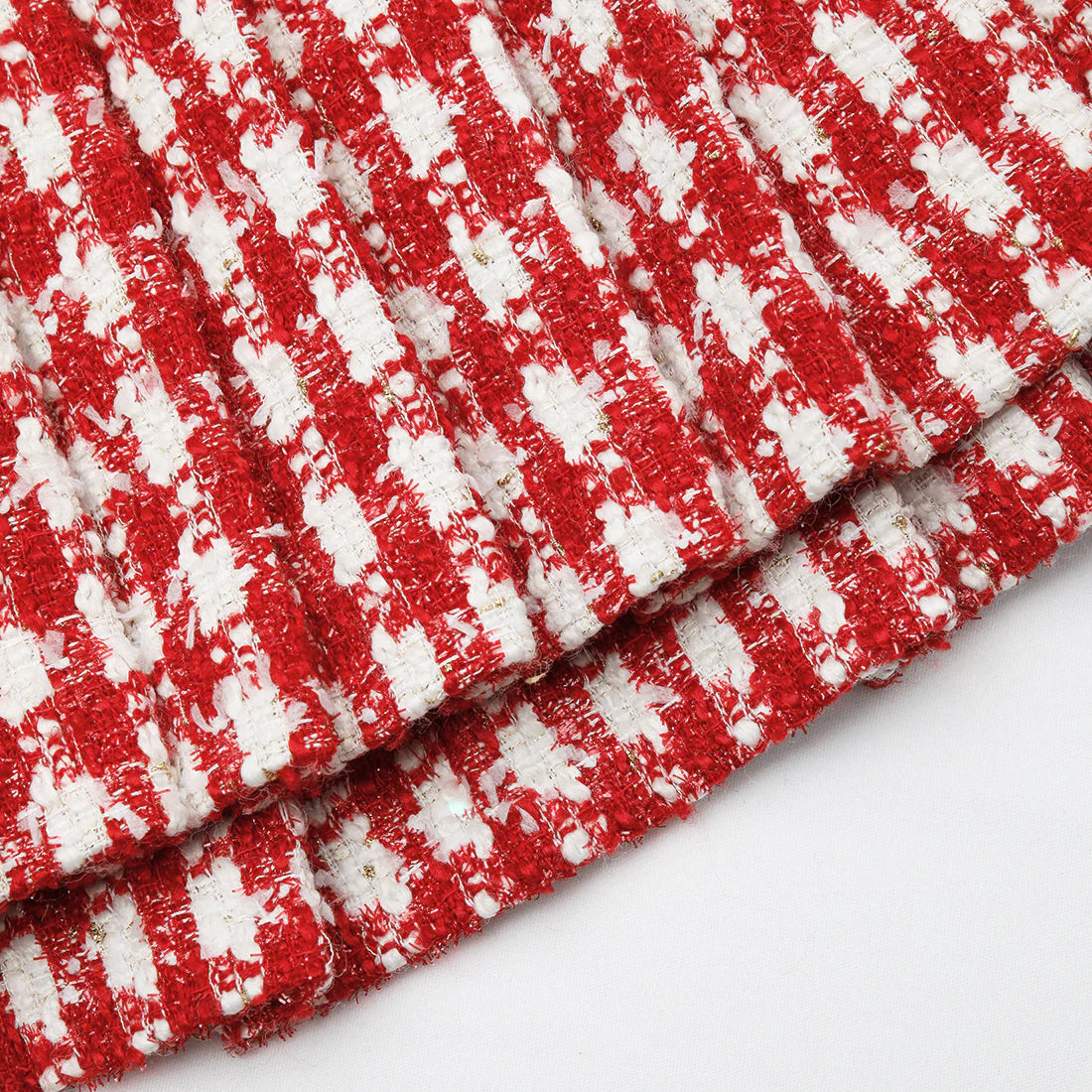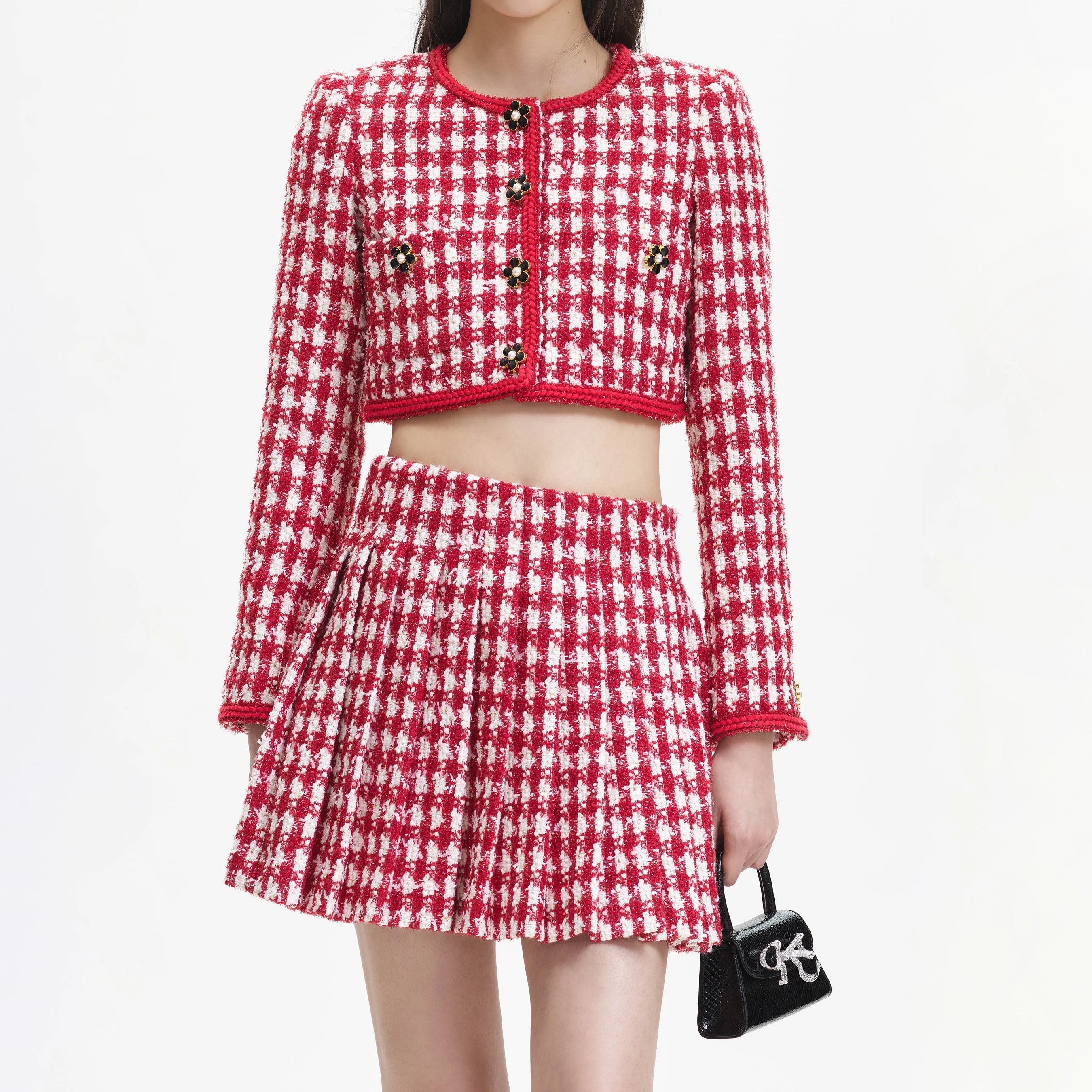 RED CHECK BOUCLE PLEATED MINI SKIRT
