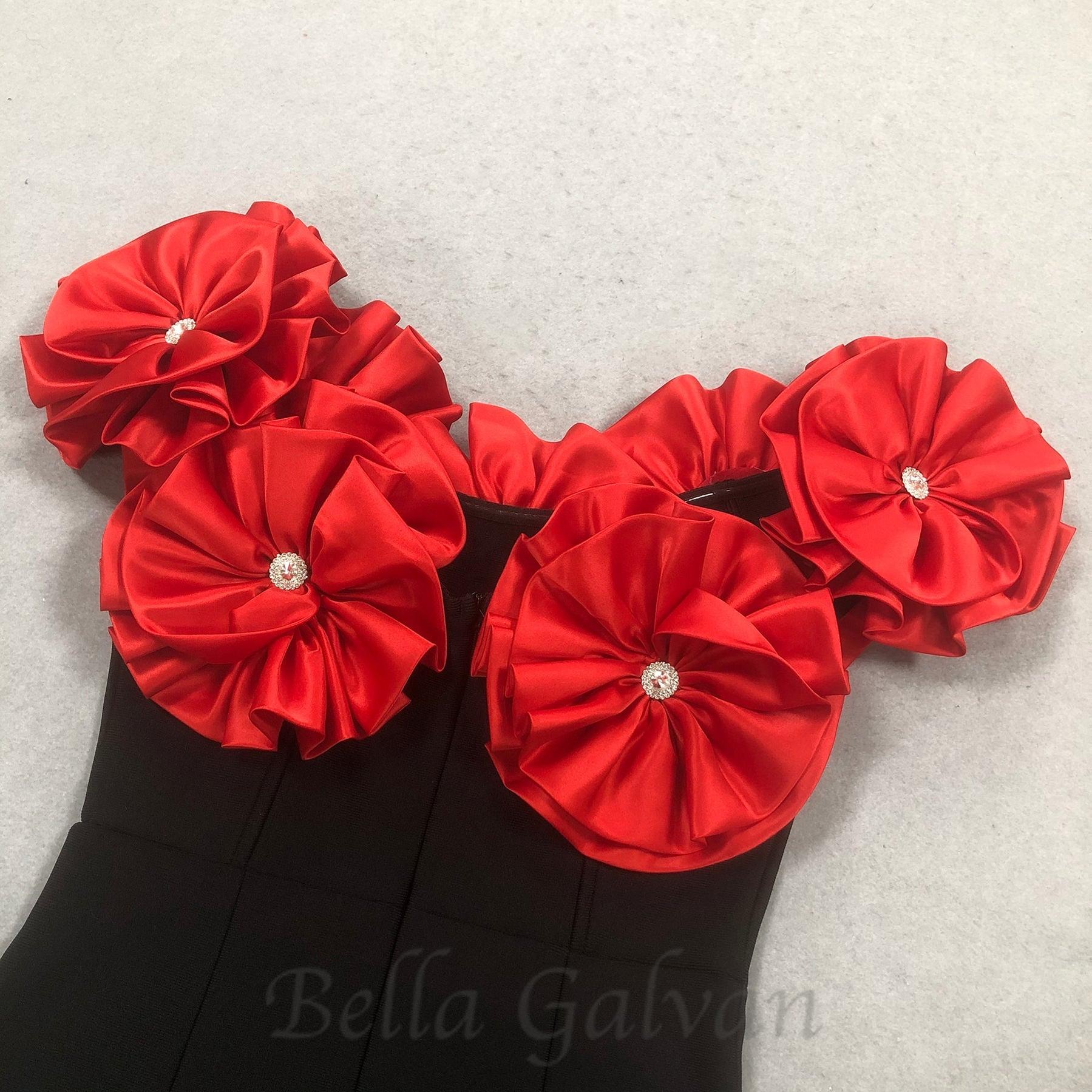 Introducing our elegant red flower embellished strapless Bandage midi dress. Featuring delicate flower accents and a flattering length, this dress is perfect for any special occasion. Crafted with high-quality materials and attention to detail, it offers both style and comfort. Elevate your wardrobe with this must-have piece.
