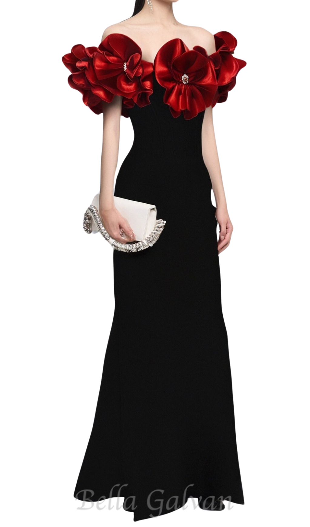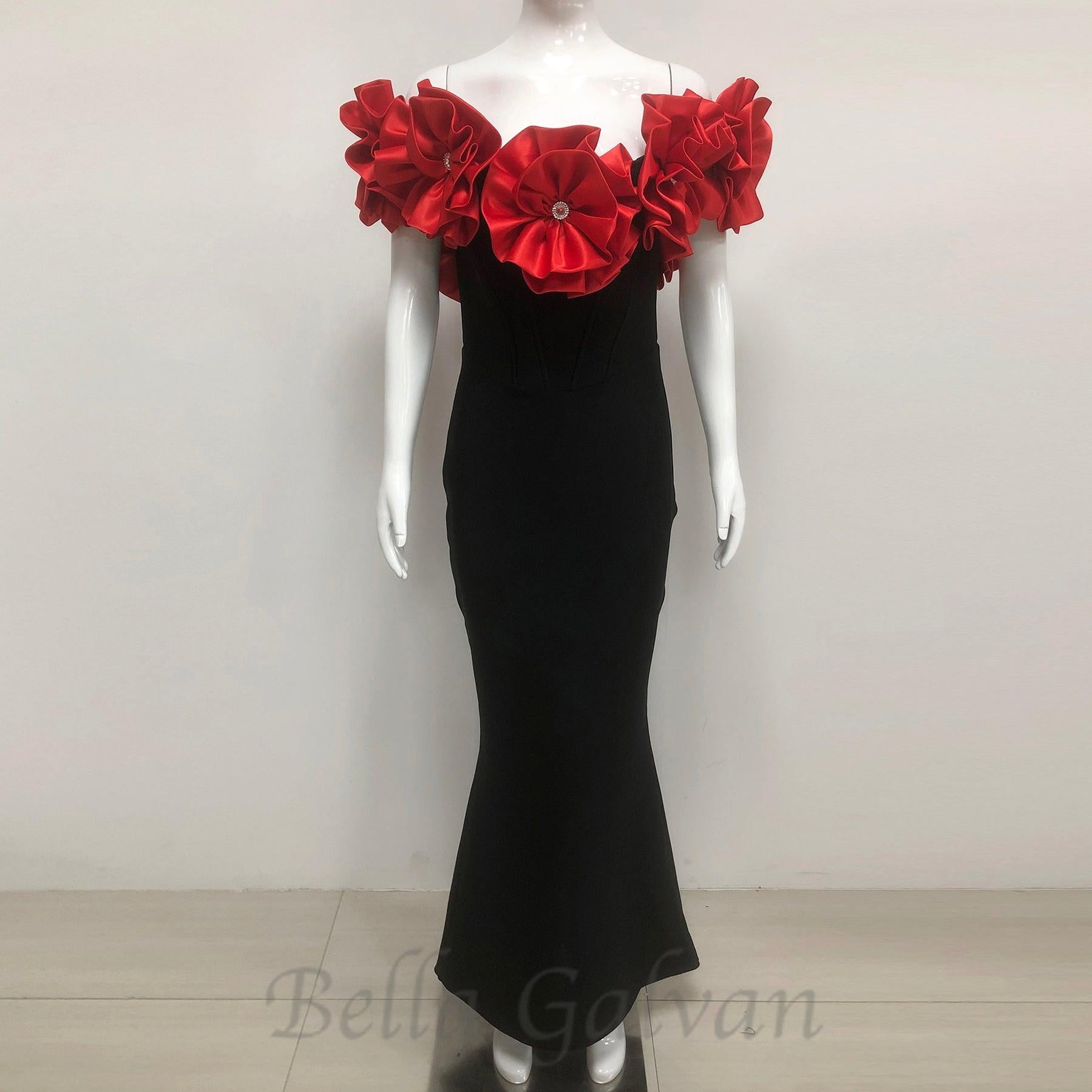 red flower embellished strapless Bandage maxi dress