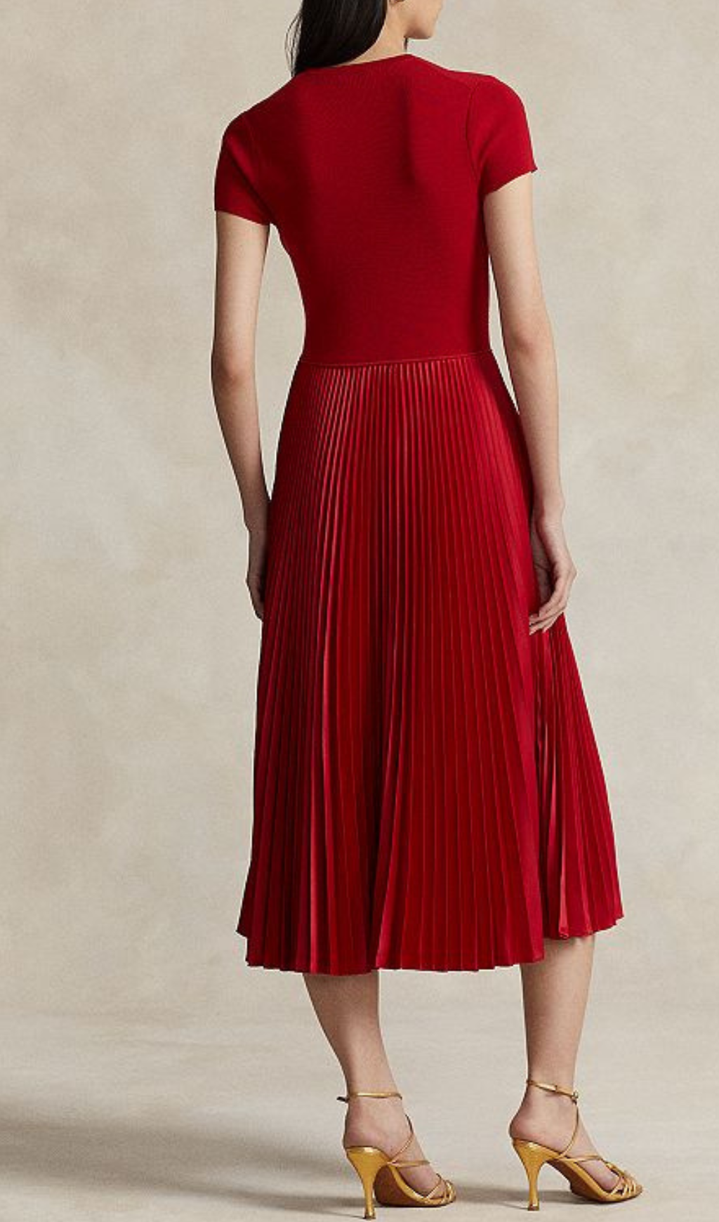 This vibrant and chic dress features stunning pleats that add texture and movement to your look. With its classic midi length, you can effortlessly dress it up or down for any occasion.