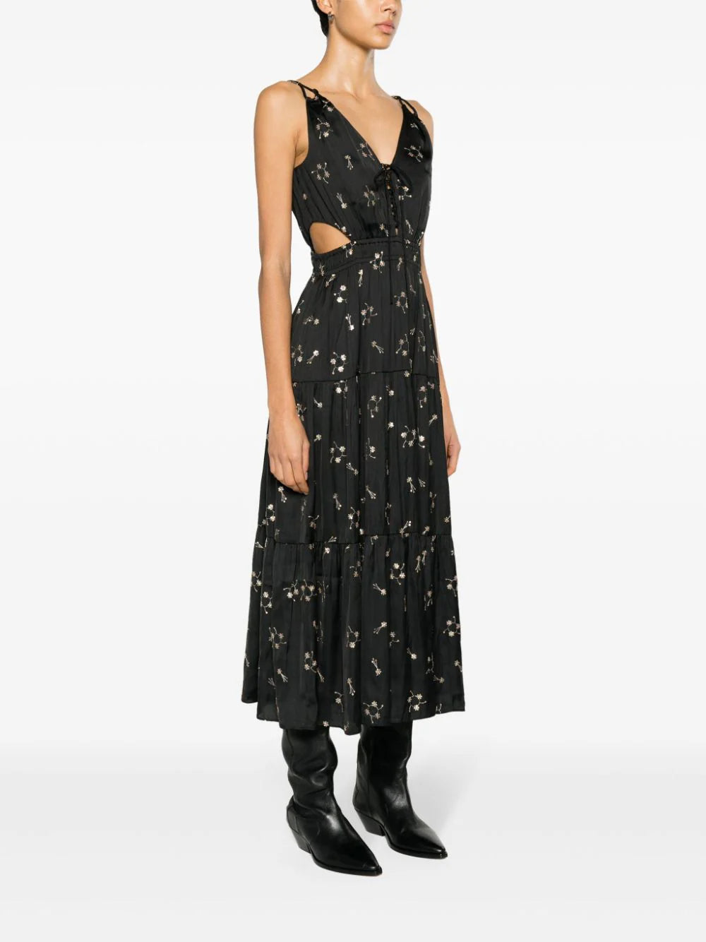 ROSOLITA SATIN EMBELLISHED MIDI DRESS