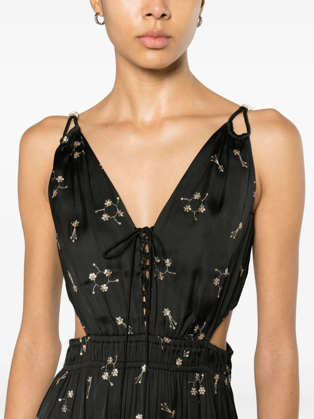 - Elasticized waist with cutout detailing