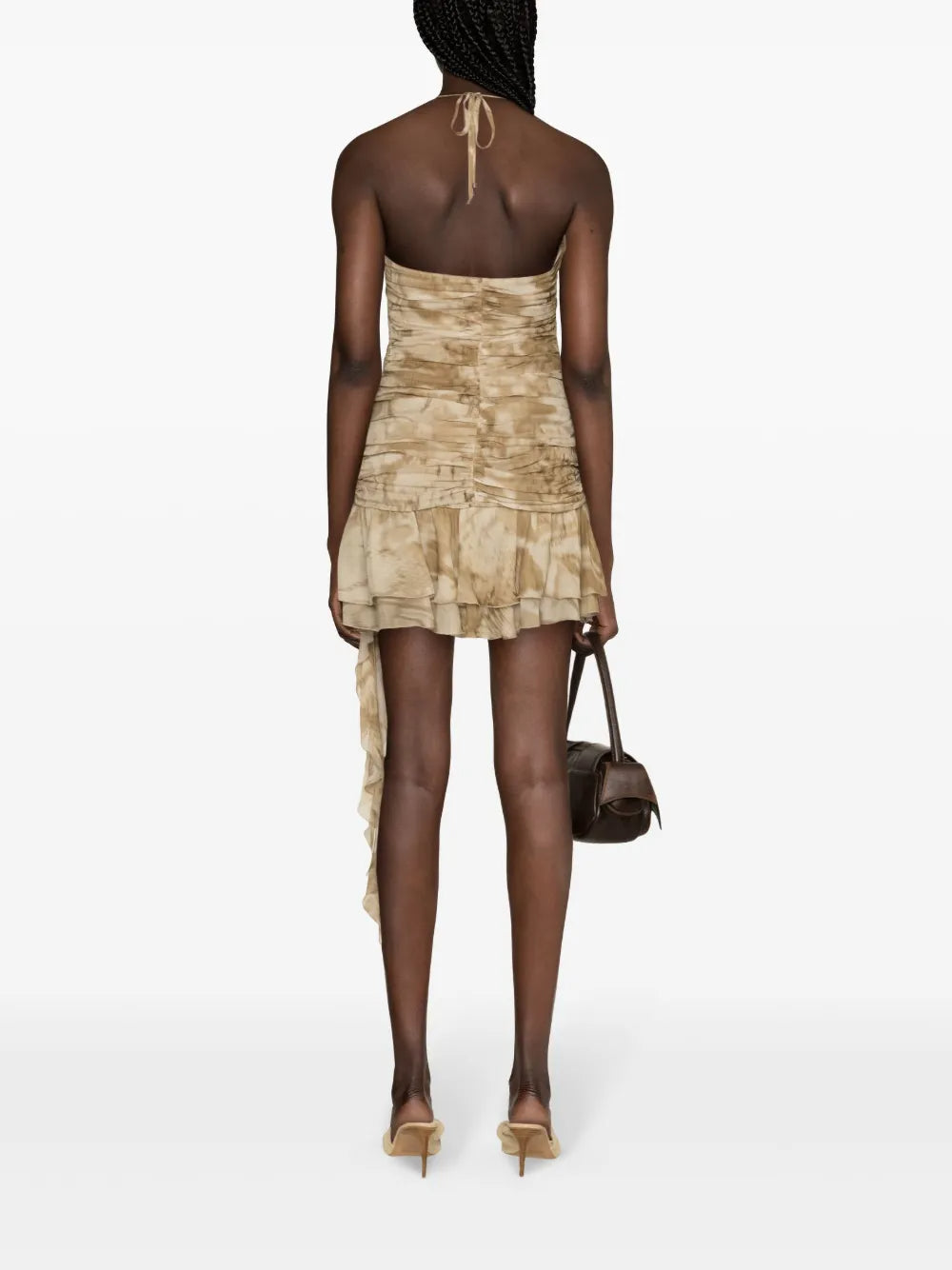 This expertly crafted mini dress features an eye-catching python print in sophisticated nude tones. The strategic ruffled detailing creates dimension and movement while the shorter length offers a contemporary silhouette. Designed with meticulous attention to texture and form, this versatile piece transitions effortlessly from day to evening occasions.