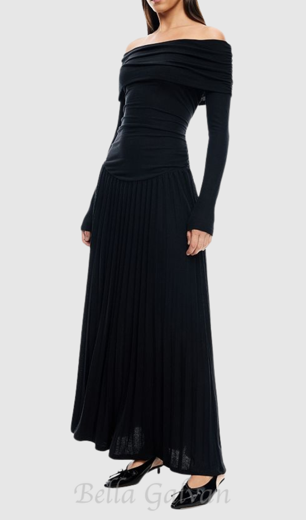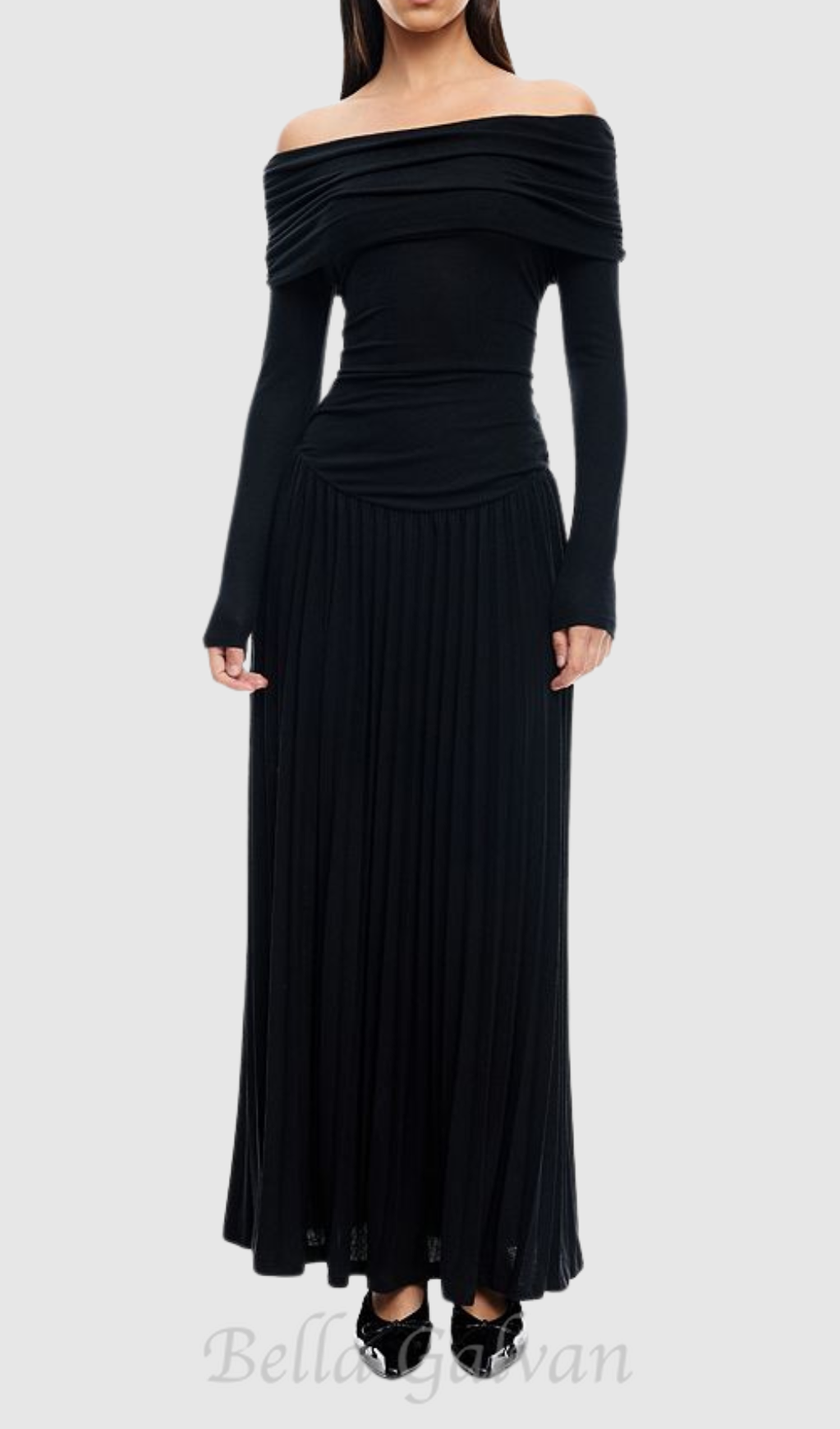 sara bodycon strapless long sleeve maxi dress in black