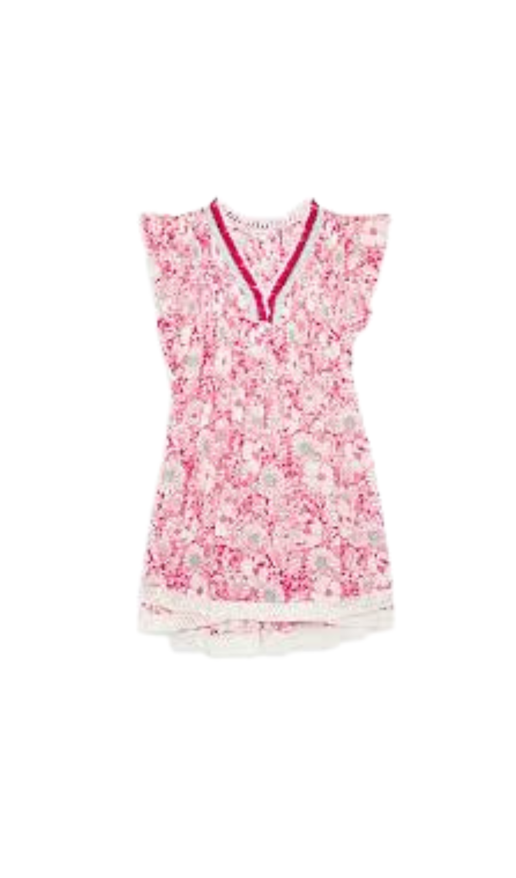 This playful dress features a trendy V-neck and eye-catching print that is sure to make a statement. Perfect for any occasion, this dress will have you looking confident and stylish.