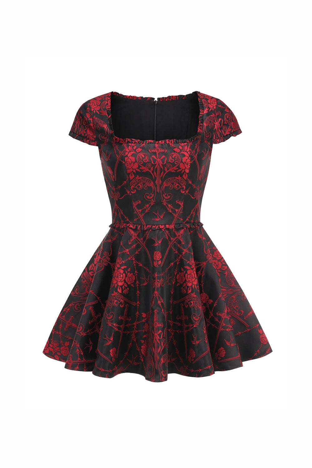 square neck jacquard mini dress in Black Red