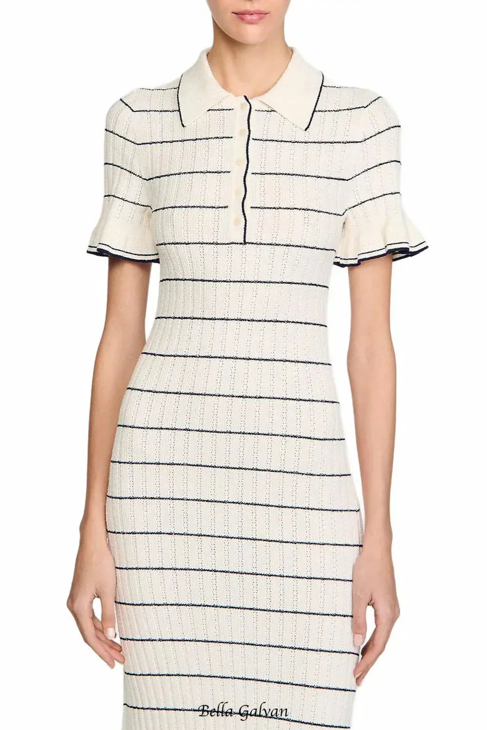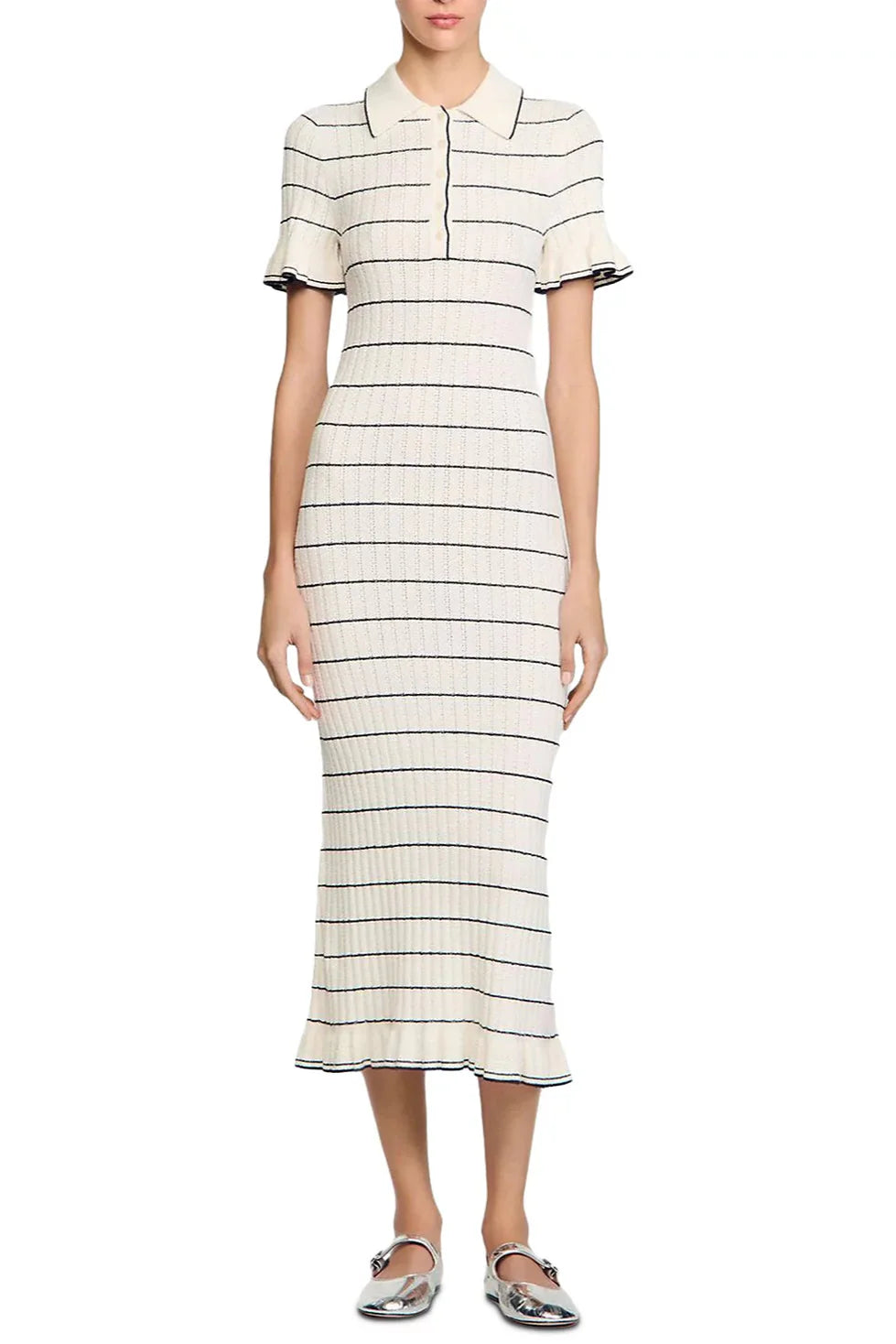 stripe Knitted Maxi Dress in ecru