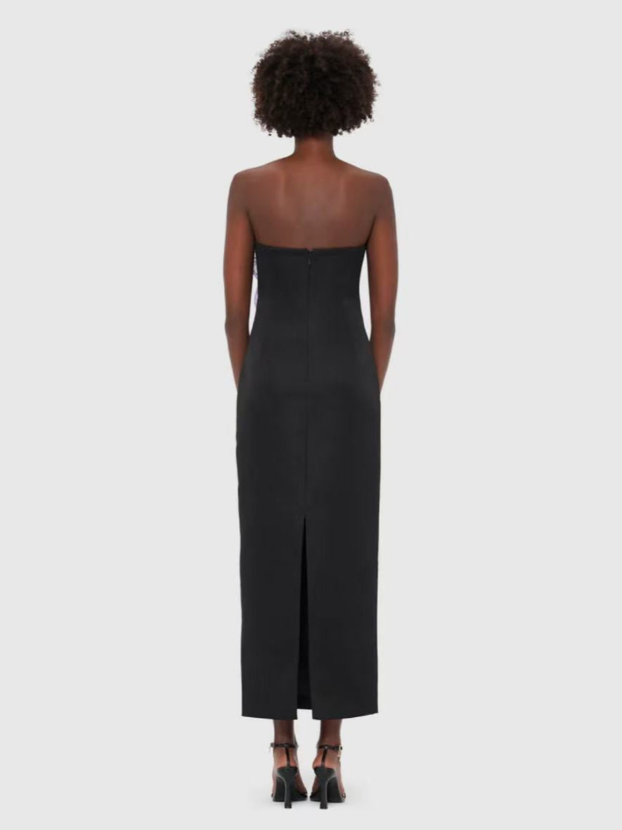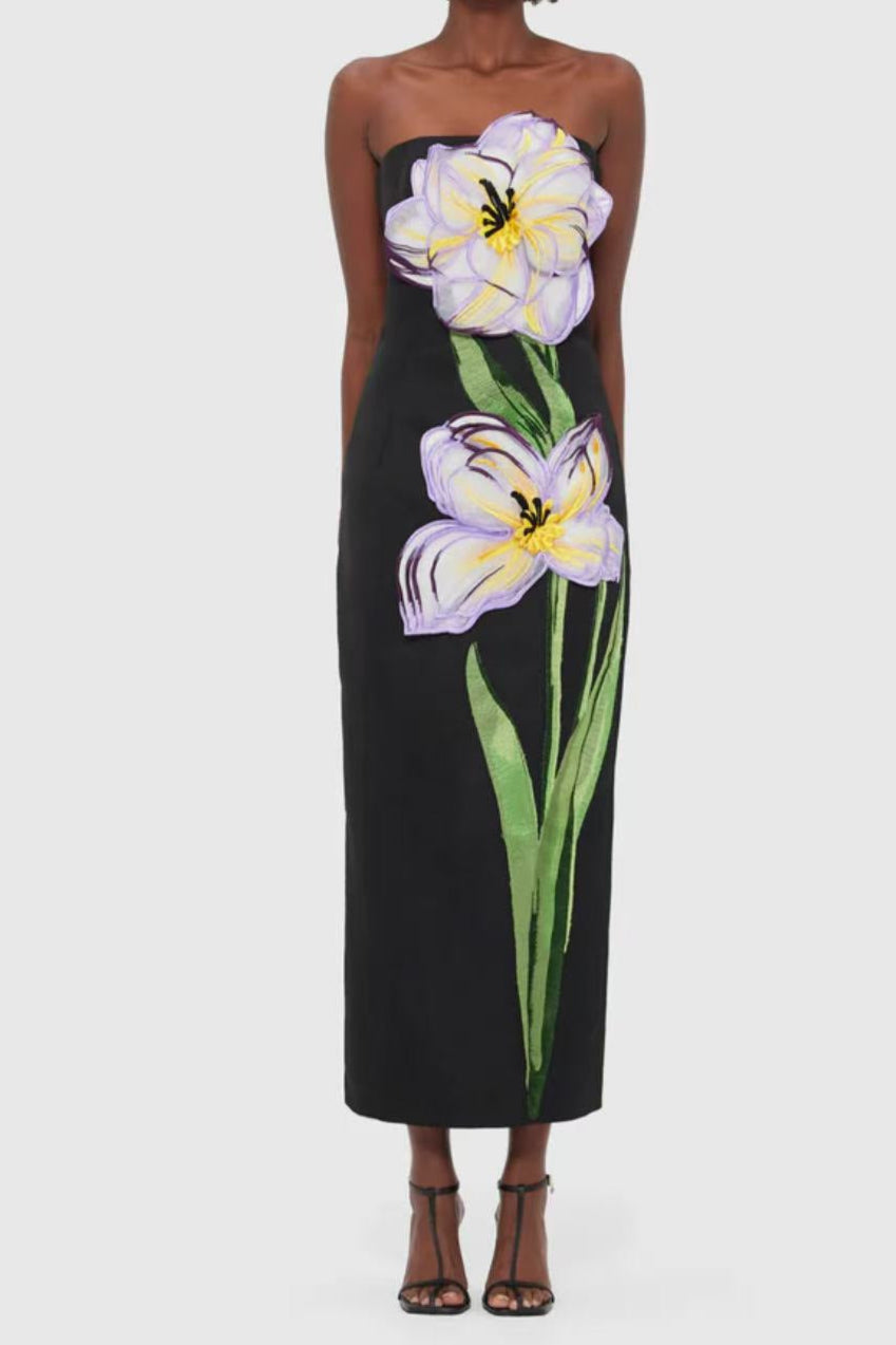 suzanne Appliqué Floral Bustier Maxi Dress in black
