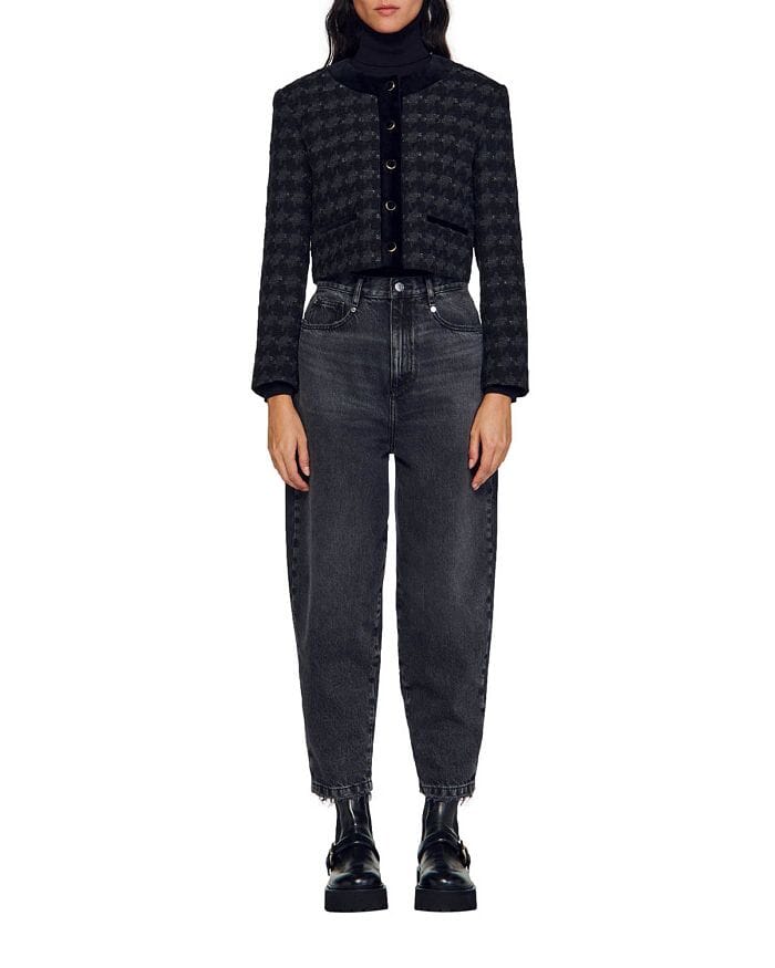 - 54% cotton/26% polyester/16% acrylic/2% viscose/2% other fibers; contrast: 98% cotton/2% elastane; lining: 100% viscose; pocket lining: 100% cotton