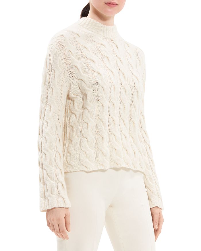 WOOL & CASHMERE CABLE KNIT MOCK NECK SWEATER