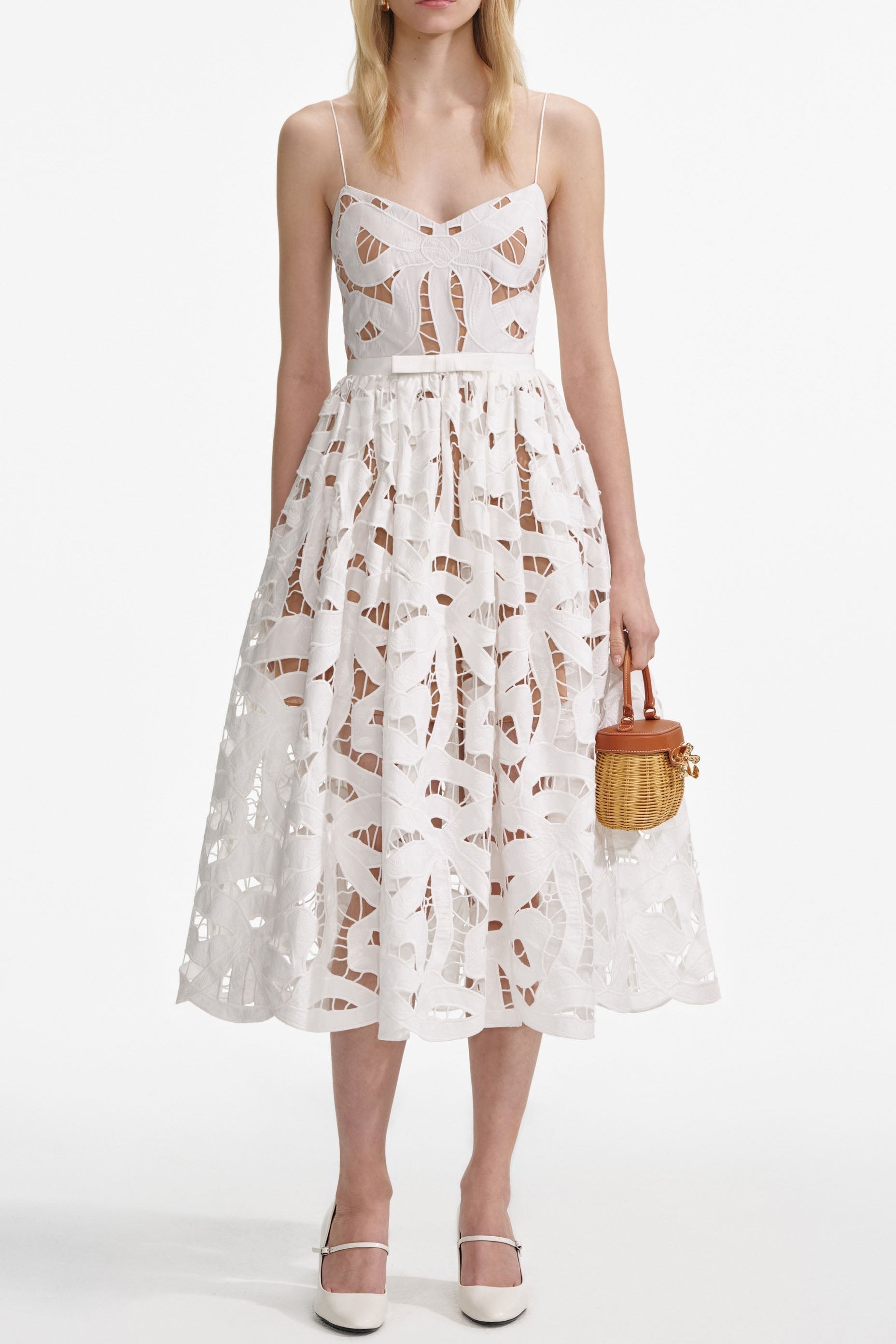 xanthe White Bow Embroidered Midi Dress