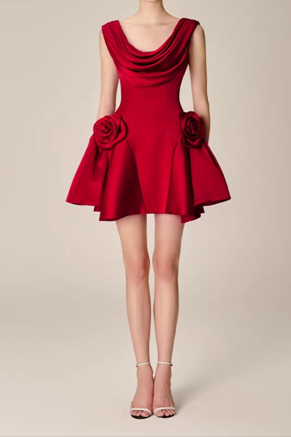 3d flower Pleated Sleeveless Mini Dress