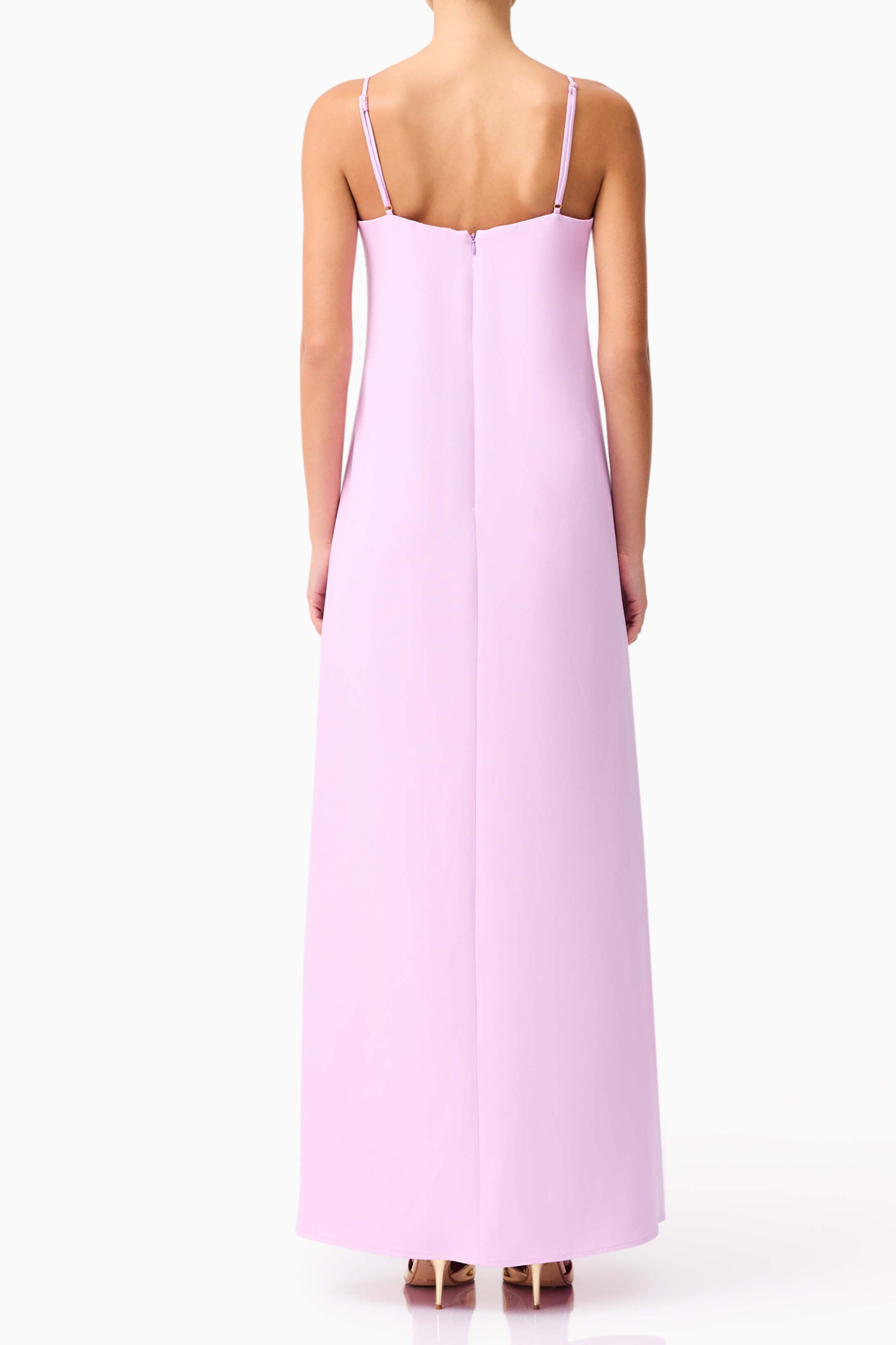 Designed with adjustable shoulder straps, this piece allows for a tailored fit that feels secure and comfortable throughout the day or night. The silhouette falls effortlessly to the floor, and a centre back invisible zipper keeps the finish smooth and refined.