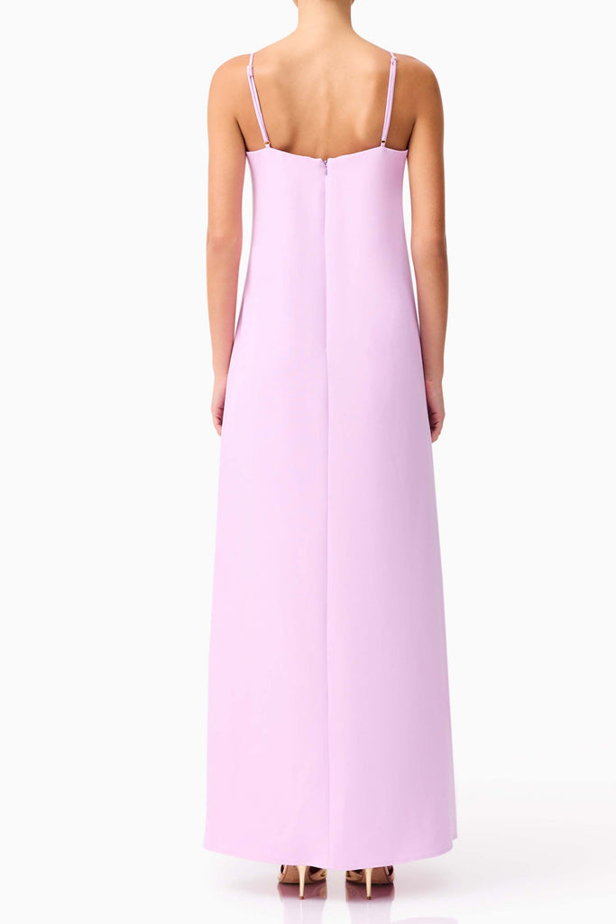 Made from a breathable suiting fabrication, the dress offers light structure without compromising on movement—perfect for long celebrations or evening events. Its maxi length makes it a go-to for weddings, formal dinners, or special celebrations where grace and glamour are key.