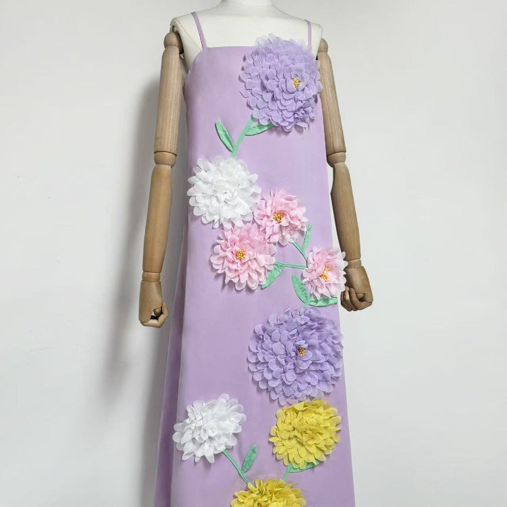 The Buttercup Embroidered Maxi Dress in Purple captures the essence of romantic elegance with a fresh, modern twist. Covered in whimsical multi-colour 3D floral embellishments, this flower-embellished maxi dress is a celebration of texture and detail. The soft purple hue adds a dreamy touch, while the delicate blooms bring life and colour to every step.
