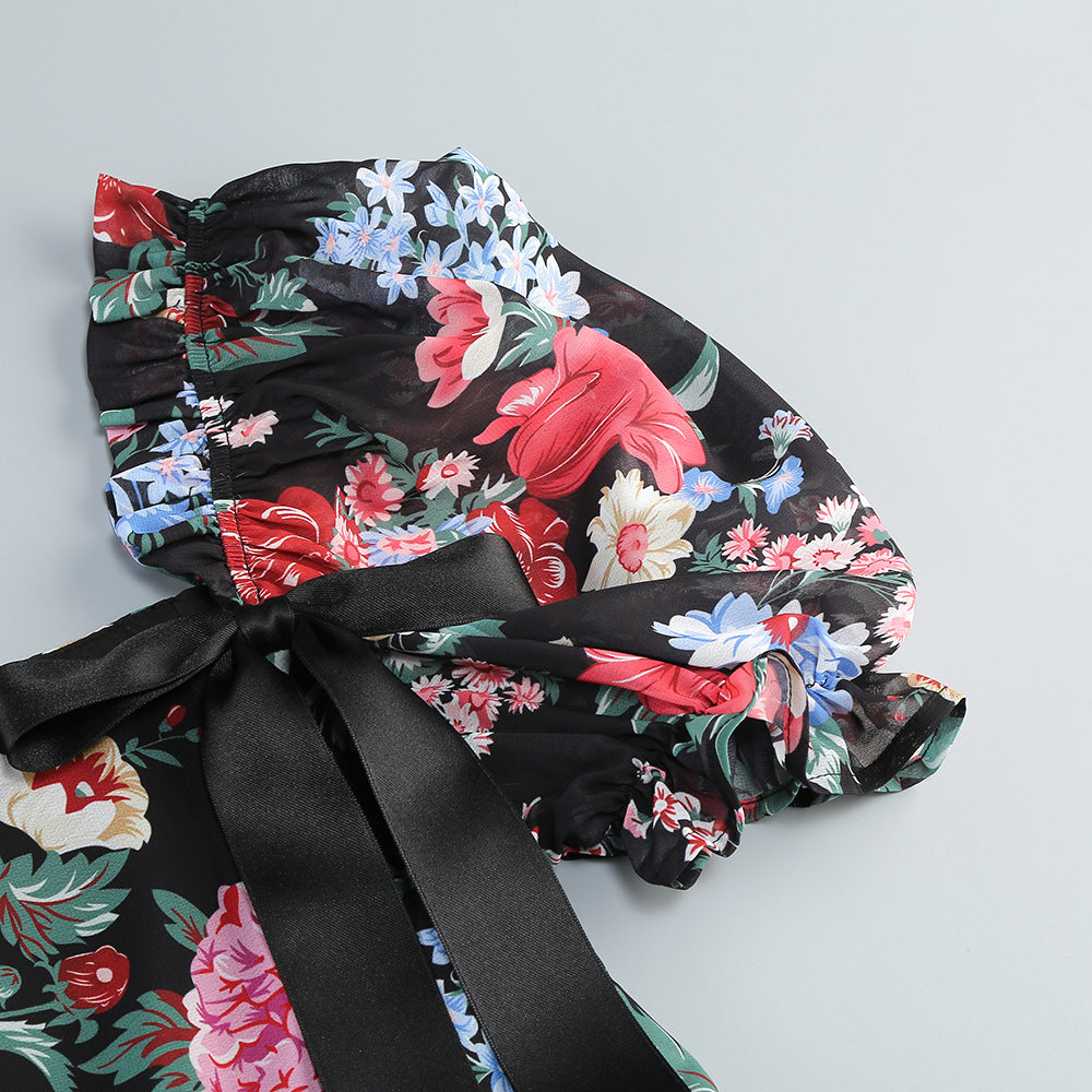 The Basia mini dress showcases a delicate floral print enhanced by thoughtfully placed ruffle trim detailing at the hemline. Distinguished by its voluminous puff silhouette, this dress creates a feminine yet architectural shape that flatters the figure. The abbreviated length provides versatility for styling, while the strategic ruffle placement adds movement and dimension. Expertly crafted to balance whimsical charm with refined tailoring, this piece transitions seamlessly from daytime events to evening occasions with appropriate accessorizing.