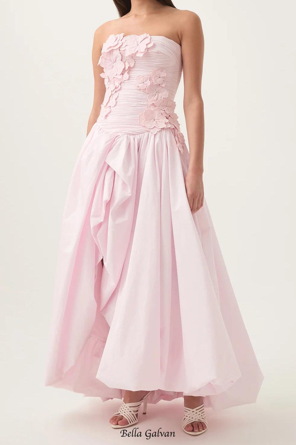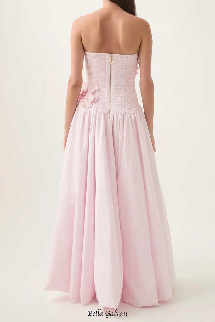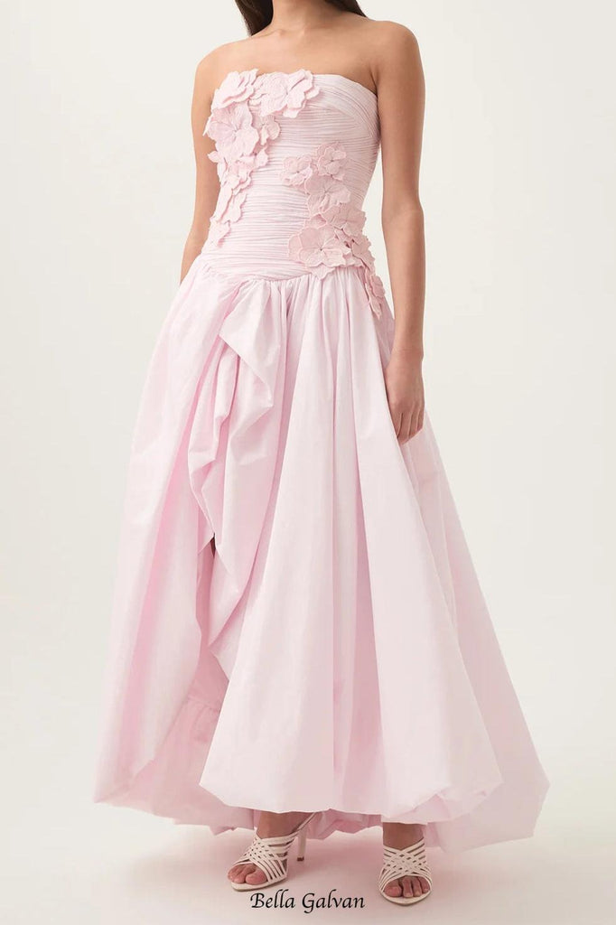 nancy Bubble Hem Maxi Dress in Pastel pink