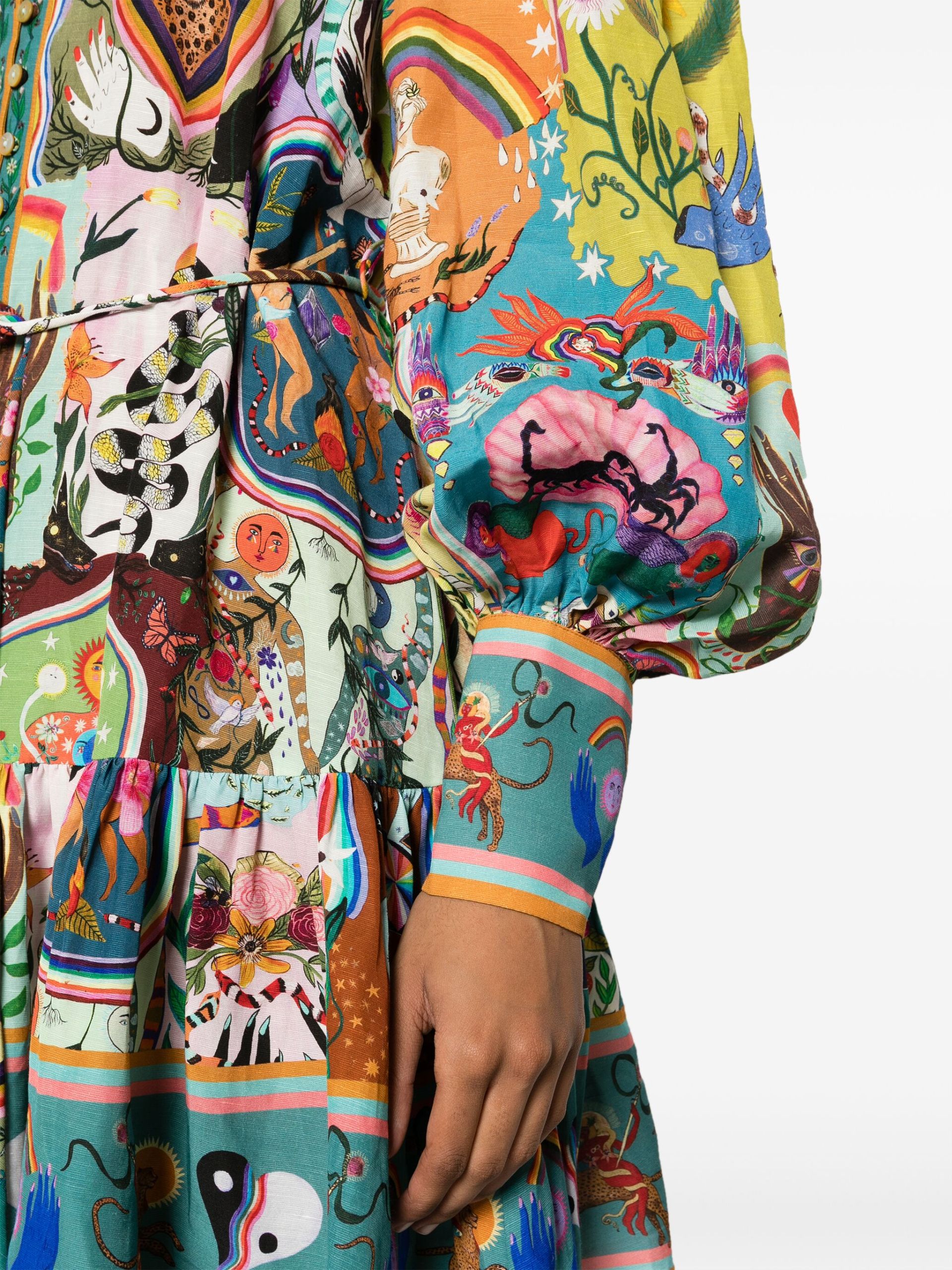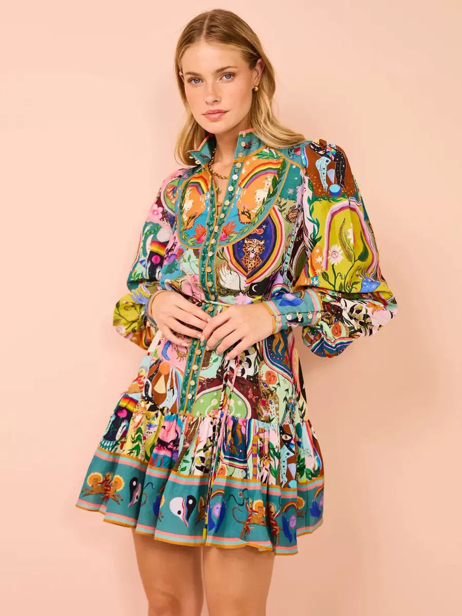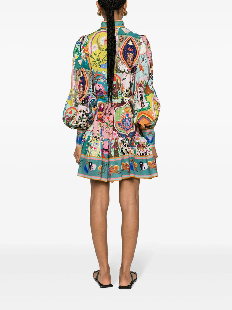 BLUE EVERGREEN ARTWORK-PRINT MINI DRESS