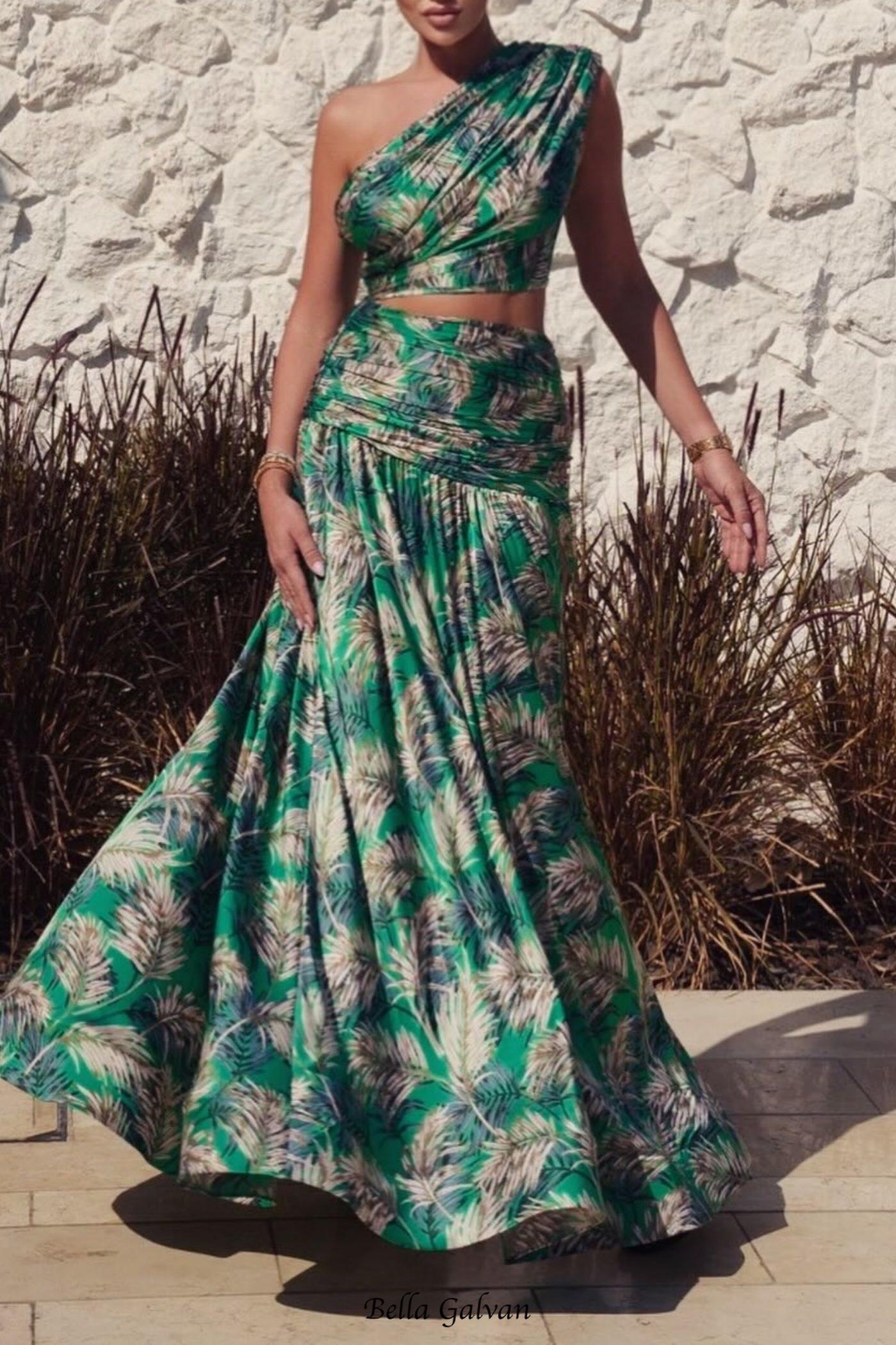 Elevate your wardrobe with the One Shoulder Leaf Print Two Piece Set, featuring a chic asymmetrical neckline and a delicate leaf pattern that exudes refined elegance. This coordinated set offers a flattering silhouette and effortless style, perfect for sophisticated occasions or stylish daywear. Crafted to combine comfort with a polished look, it ensures you stand out with subtle grace.