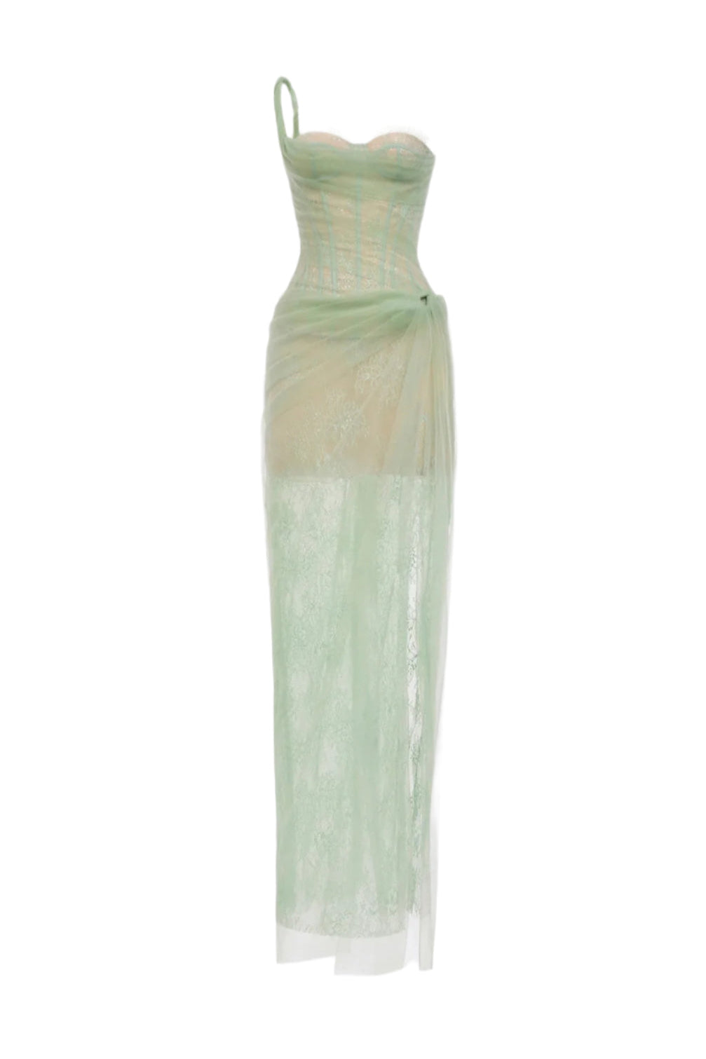 -Special Features: Corset design, Sarong on one side with ring, Two--layer skirt, Twisted one shoulder strap
