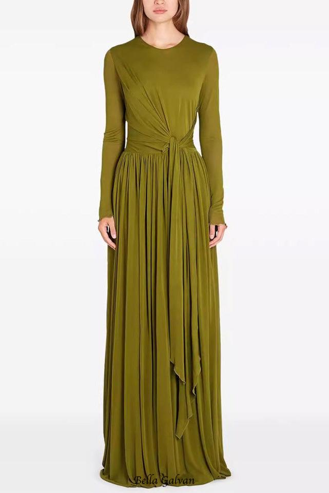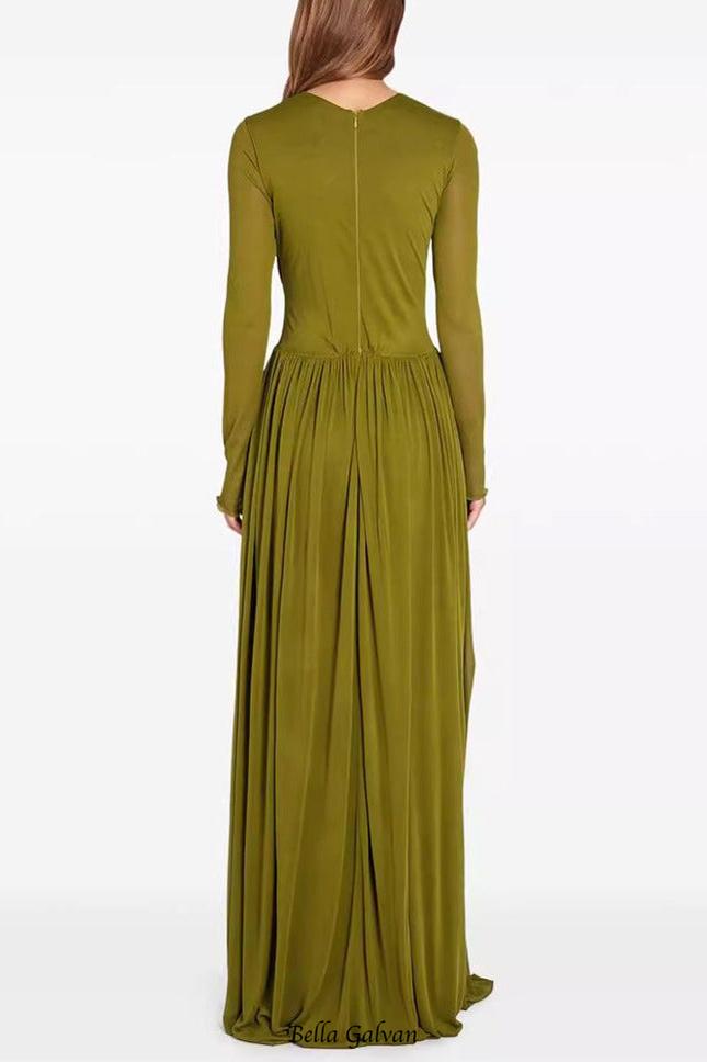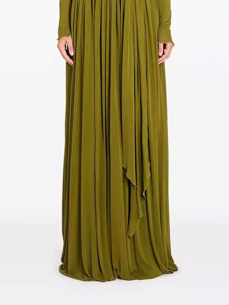 pleated maxi dress with draping Olive green