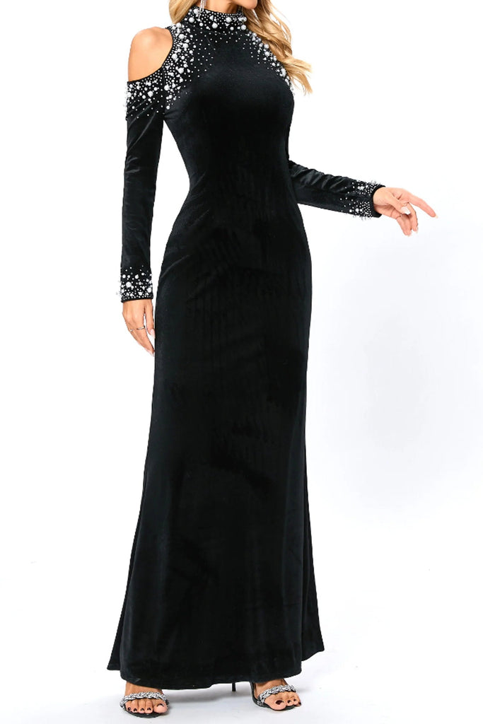 ANNONA BLACK FLOWER EMBELLISHED MAXI DRESS