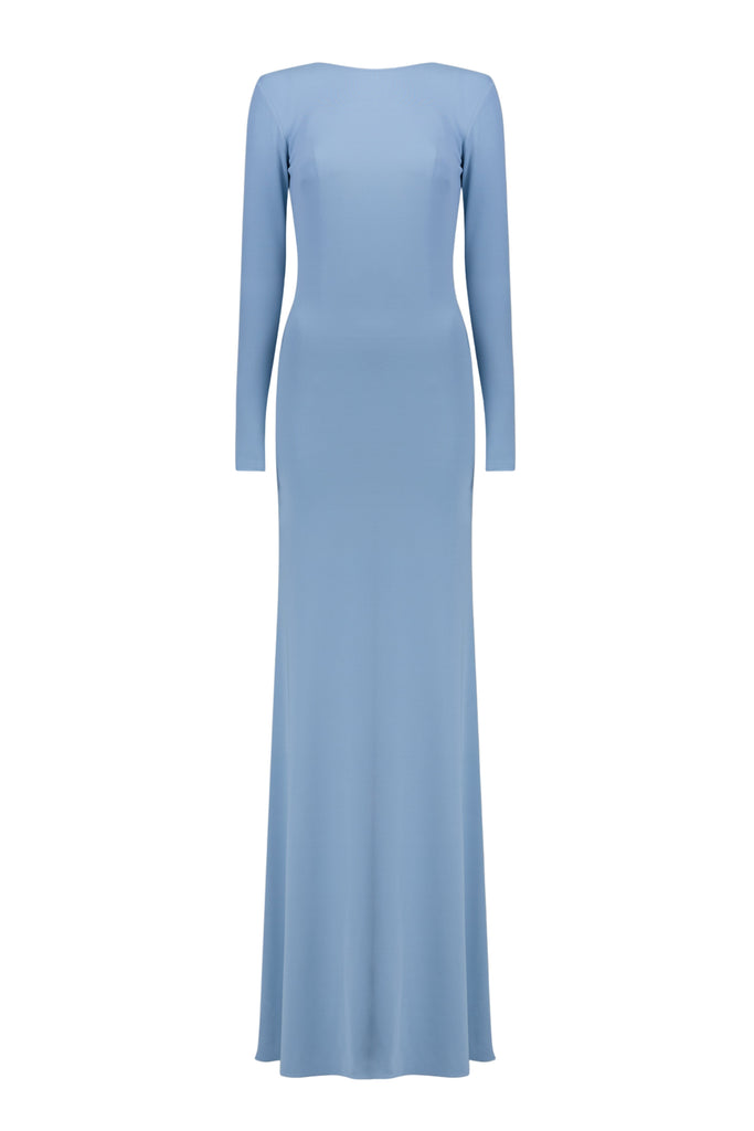 vicky Knitted long sleeves backless bodycon maxi dress in blue
