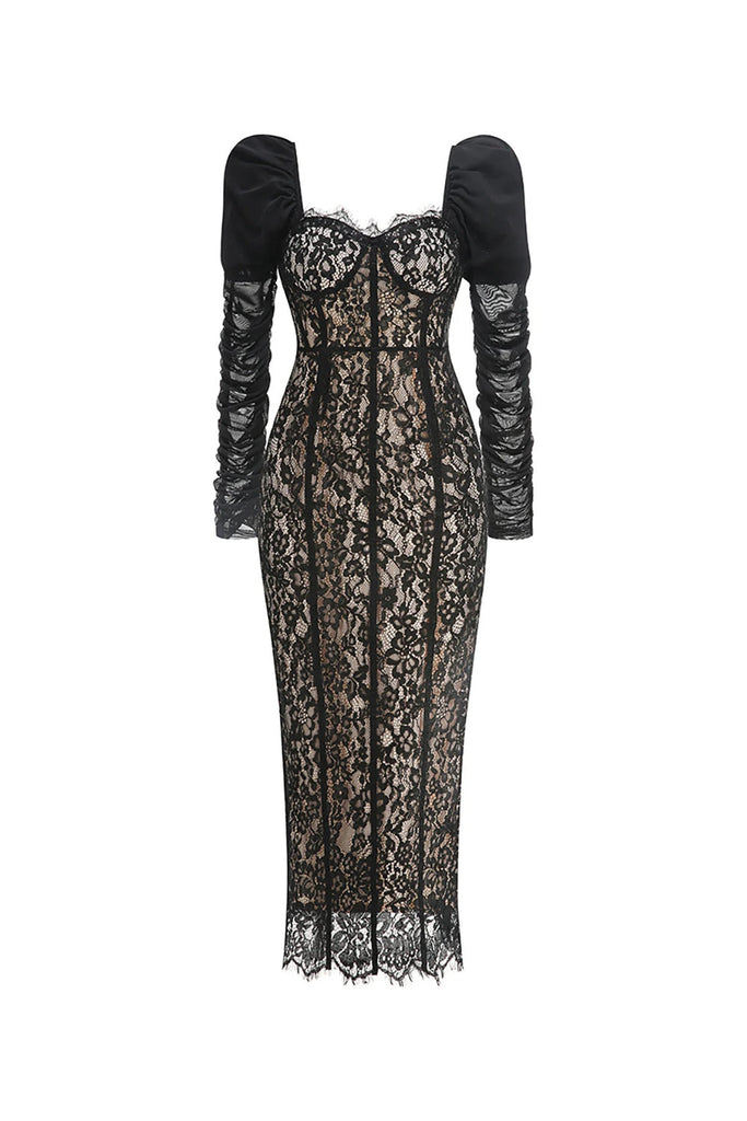 sara Black Mesh Rhinestones Embellished Bodycon Bandage maxi dress