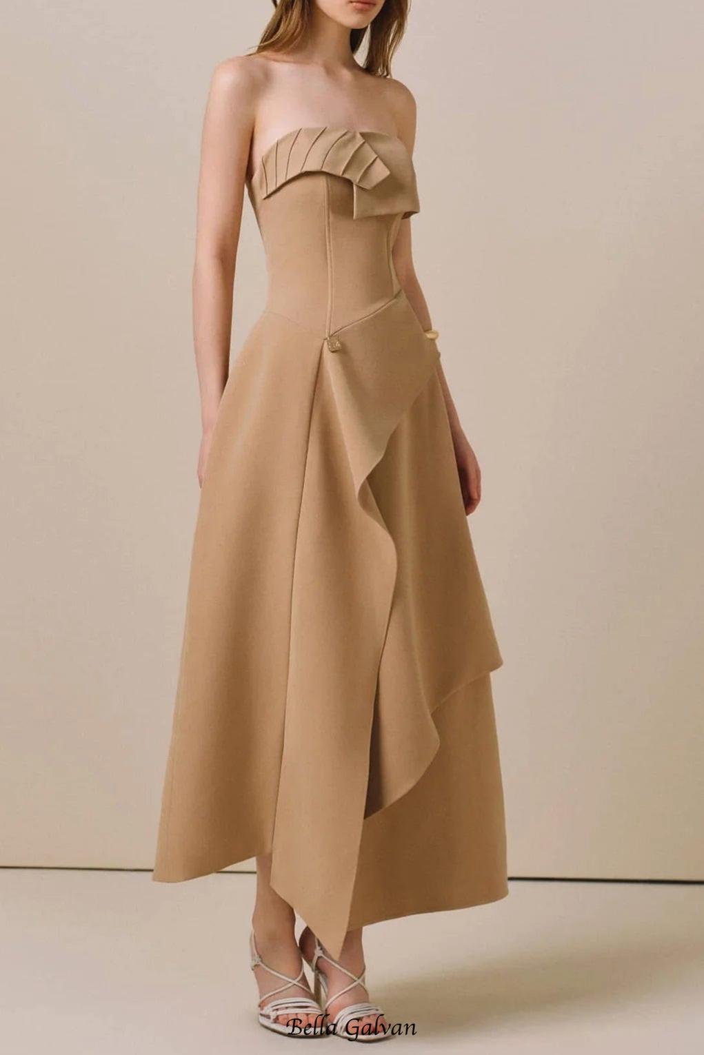 HIGH WAIST SLIM IRREGULAR TUBE TOP MIDI DRESS