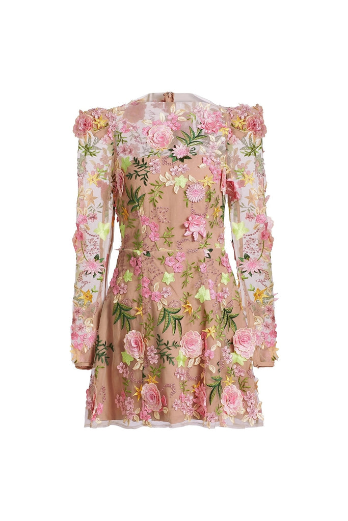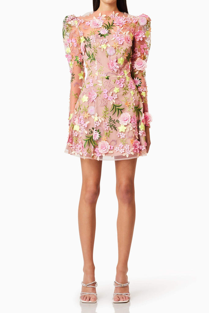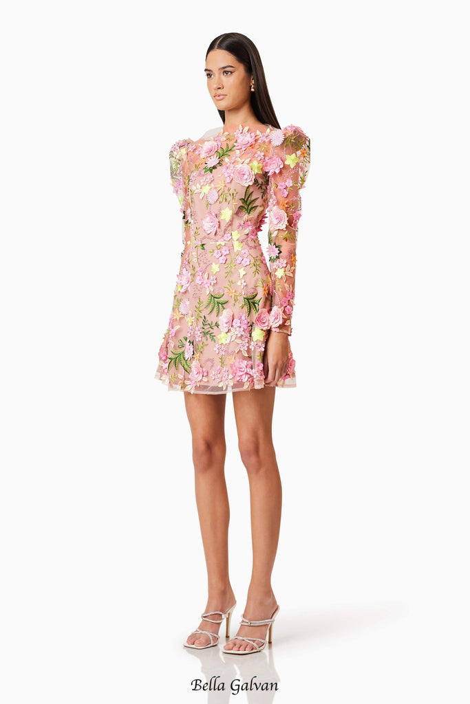 Whether worn to a wedding, a formal event, or a night out, the Aella A-line Floral Mini Dress in Pink will have you turning heads with its timeless charm and exquisite craftsmanship.