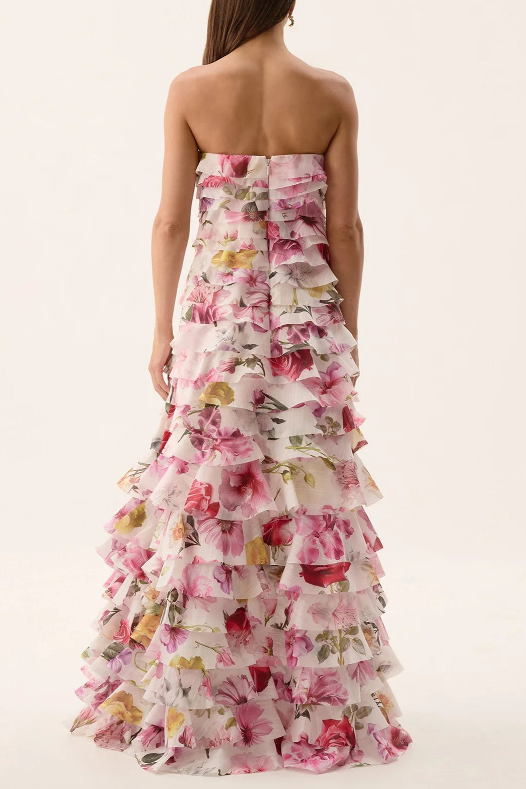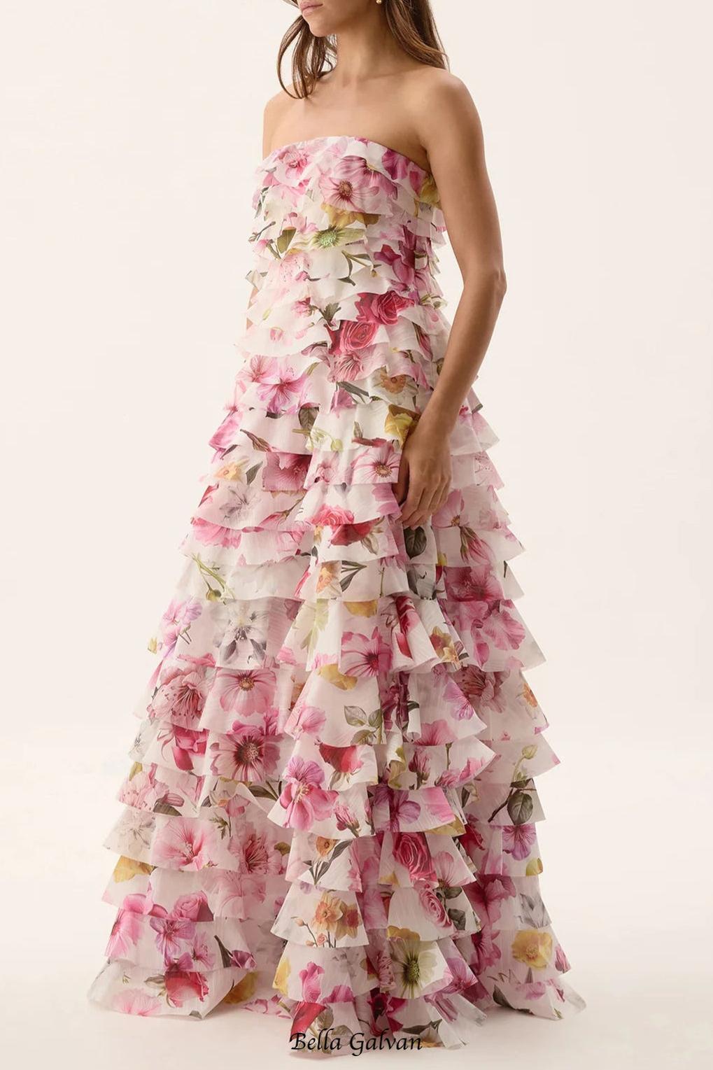 Elevate your wardrobe with the Cathy floral print pleated layer strapless maxi dress in pink. This expertly designed dress features delicate pleated layers that add texture and movement, while the strapless silhouette enhances your neckline for an elegant, modern look. The soft pink floral pattern brings a fresh, feminine touch, making it perfect for special occasions or stylish daytime events. Crafted for both comfort and sophistication, this maxi dress effortlessly blends classic charm with contemporary flair.