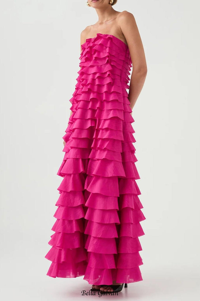 Elevate your wardrobe with the Cathy Pleated Layer Strapless Maxi Dress in Rose Red. This expertly designed dress features delicate pleated layers that add texture and movement, while the strapless silhouette offers a sleek, elegant look. The vibrant rose red hue enhances your presence for any formal occasion or special event. Crafted to combine sophistication with comfort, it flatters the figure effortlessly, making it a timeless addition to your collection.