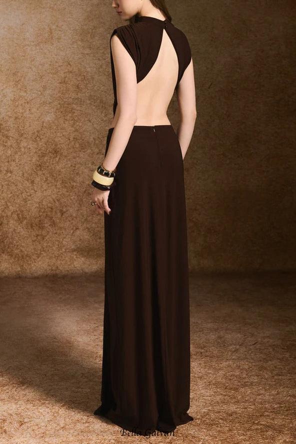 damla Sheath Open Back Spandex Maxi Dress in dark brown