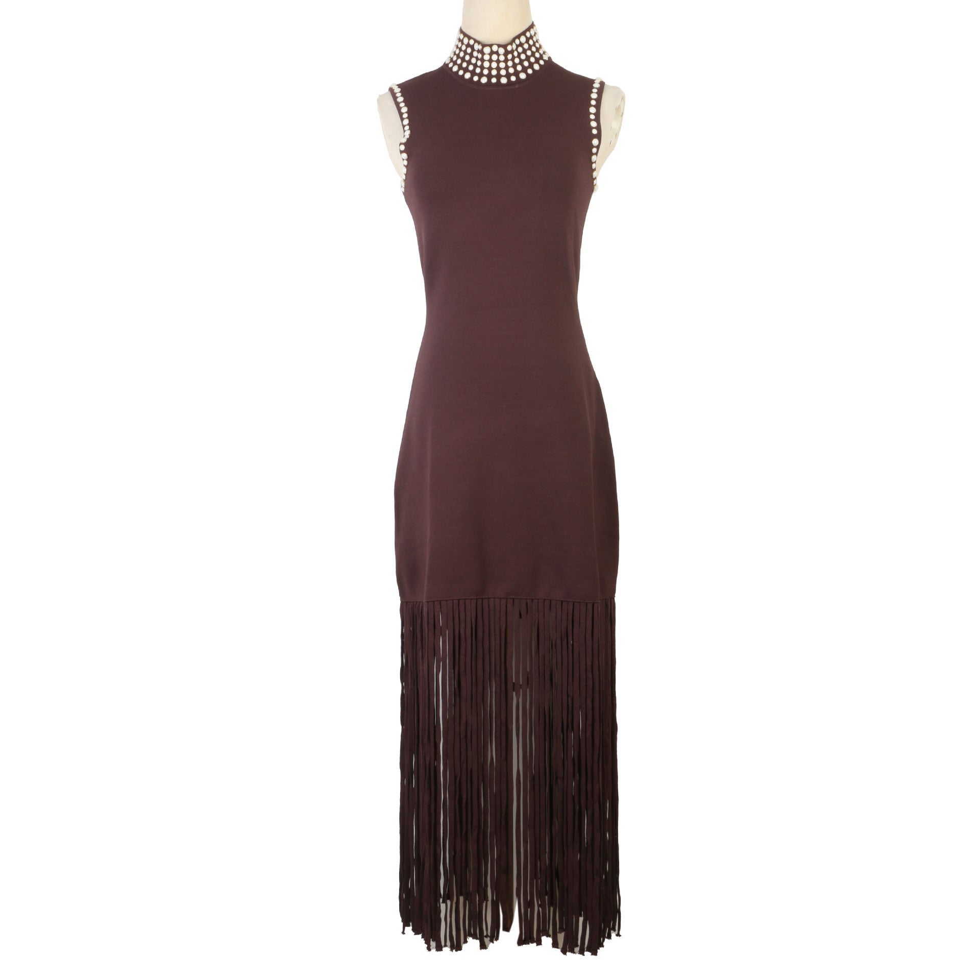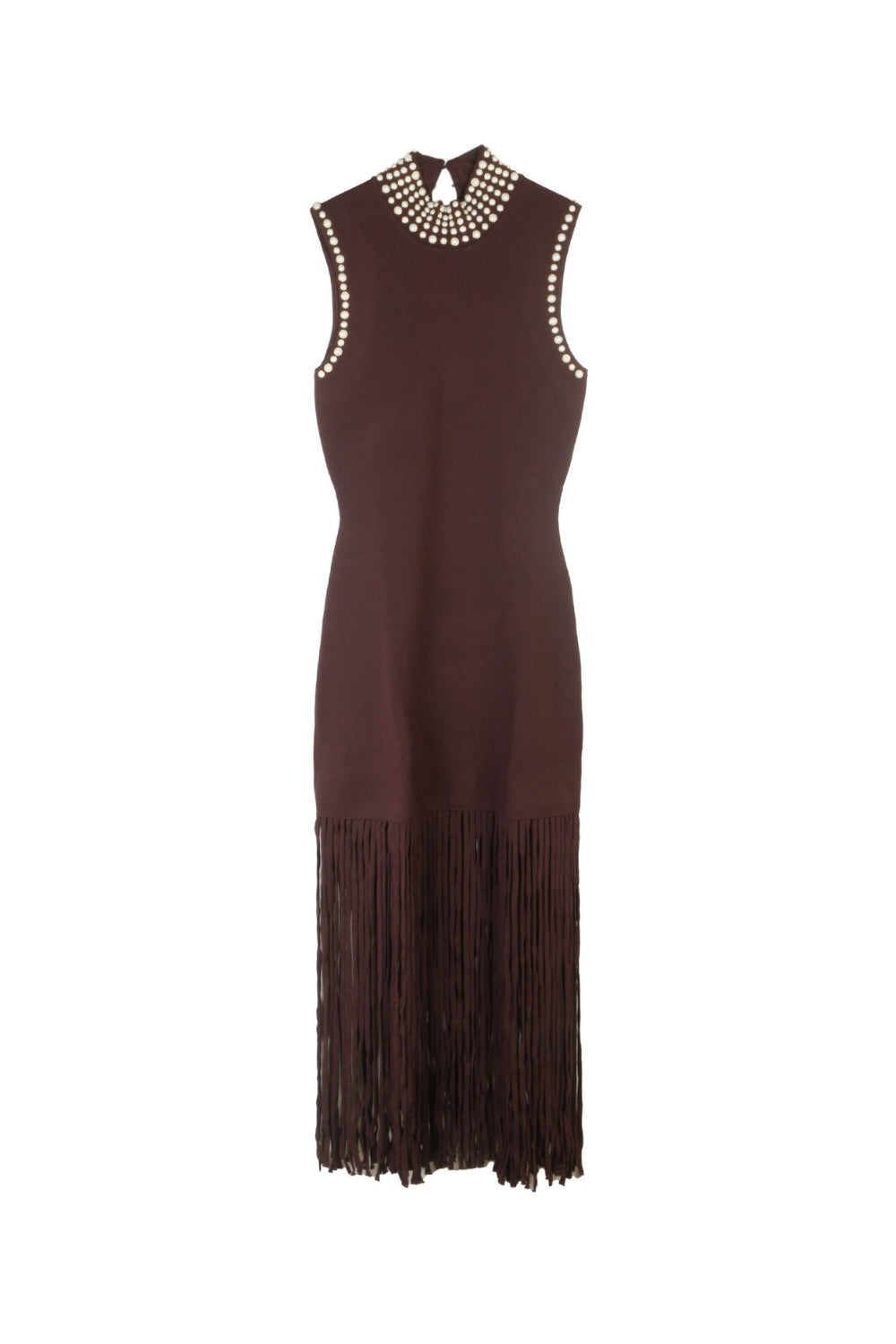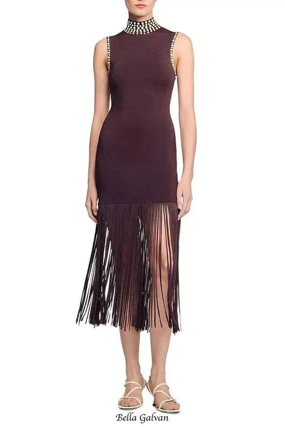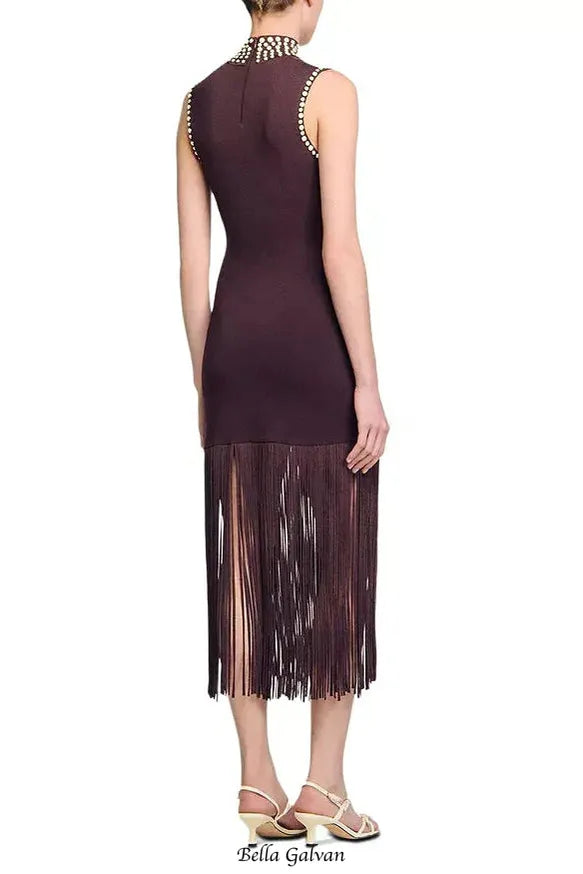 lara Brown Fringe Knit Embellished sleevless midi Dress